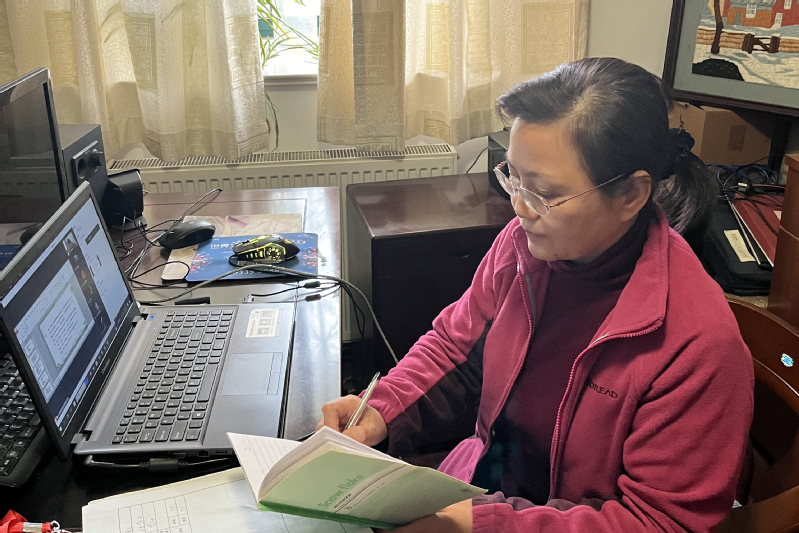 (教师在家中上网课)