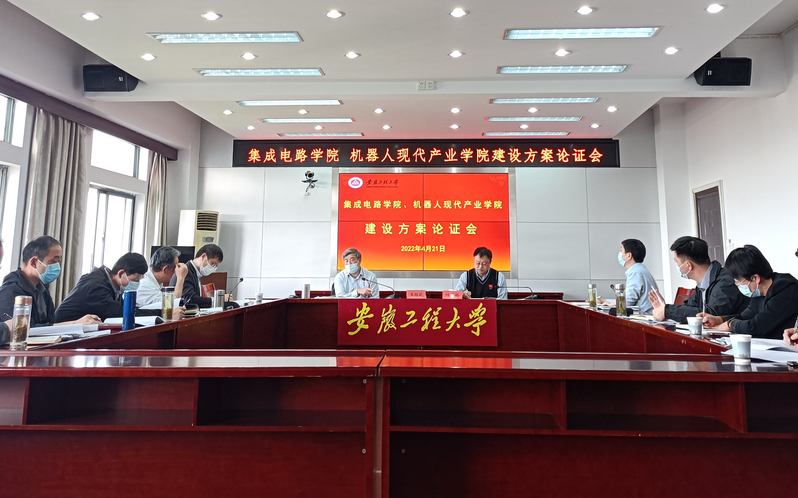 本网讯 4月21日,学校在行政楼1121会议室组织召开集成电路学院与机器人现代产业学院建设方案论证会。校党委副书记、校长王绍武,副校长叶常林,组织部、人事处、教务处、科技处、研究生部主要负责人,机械工程学院、电气工程学院、数理与金融学院党政负责人,教务处相关人员参加会议。会议由王绍武主持。