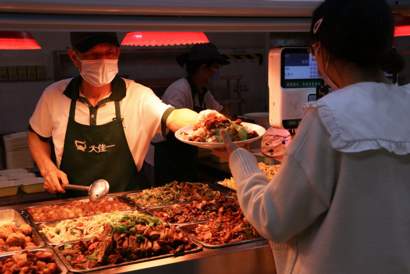 食堂打饭的大叔说:“今天是劳动节,这个劳动节很特殊,学校仍然在严格管理之中。这时候我们更应该让同学们吃好喝好,洗菜、切菜、配菜、烧菜整个过程我们都力求卫生、美味,让孩子们吃出‘家的味道’是我们的愿望!”