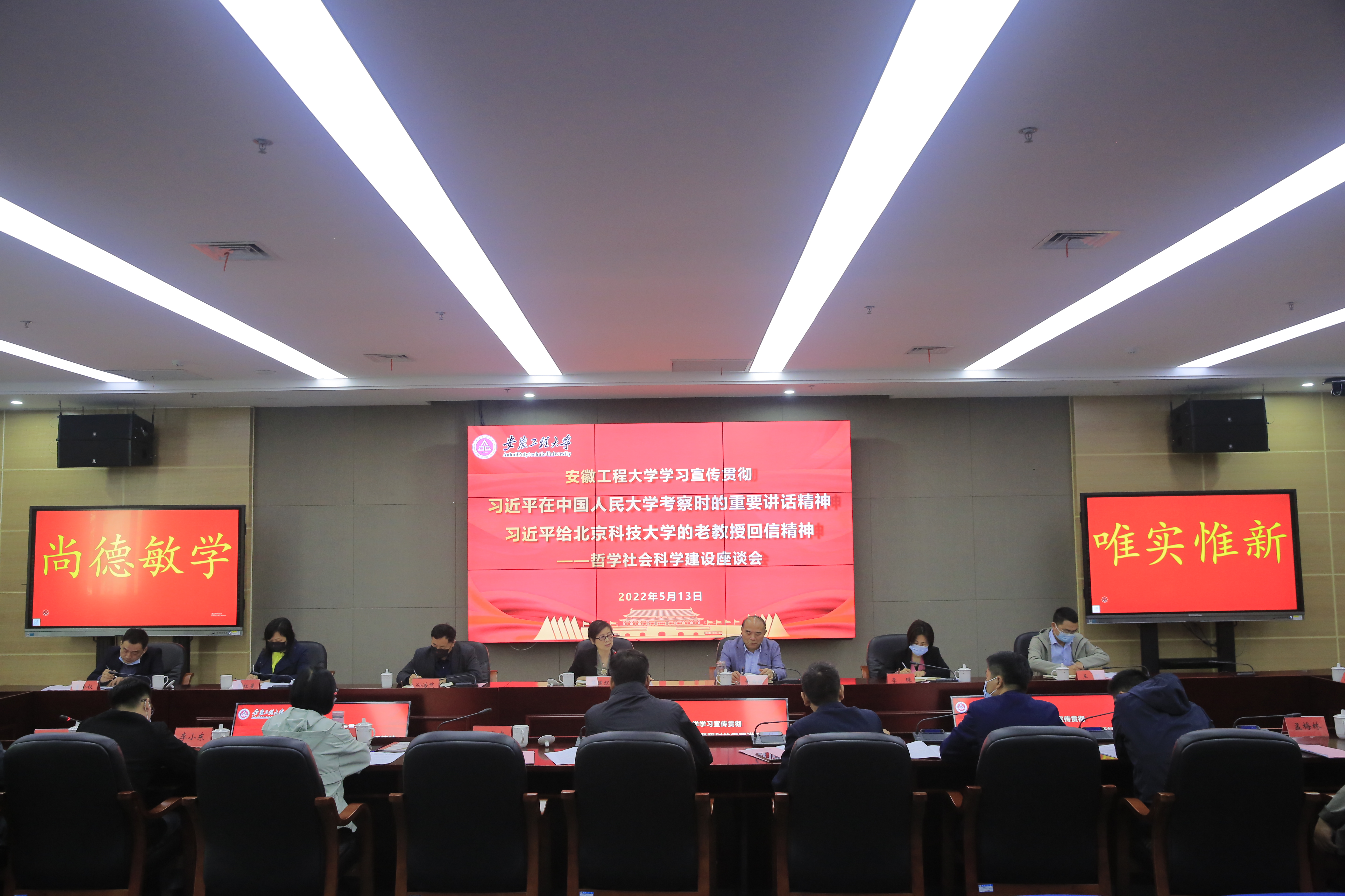 本网讯 5月13日上午,学校在图书综合楼201会议室召开哲学社会科学建设座谈会,专题学习研讨习近平在中国人民大学考察时的重要讲话精神和习近平给北京科技大学的老教授回信精神。校党委副书记苏国红,校党委常委、副校长费为银,社科联、研究生部、科技处、图书馆负责人以及相关哲学社会科学类学院负责人和教师代表参加会议。会议由苏国红主持。
