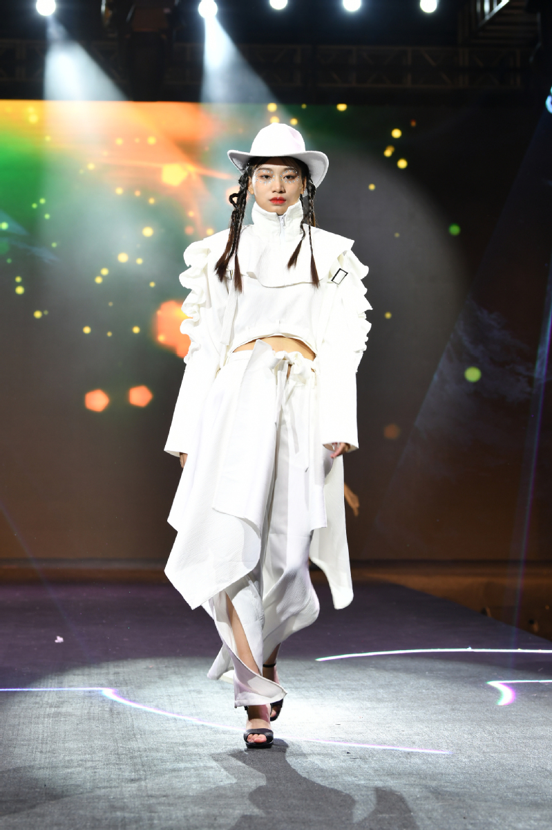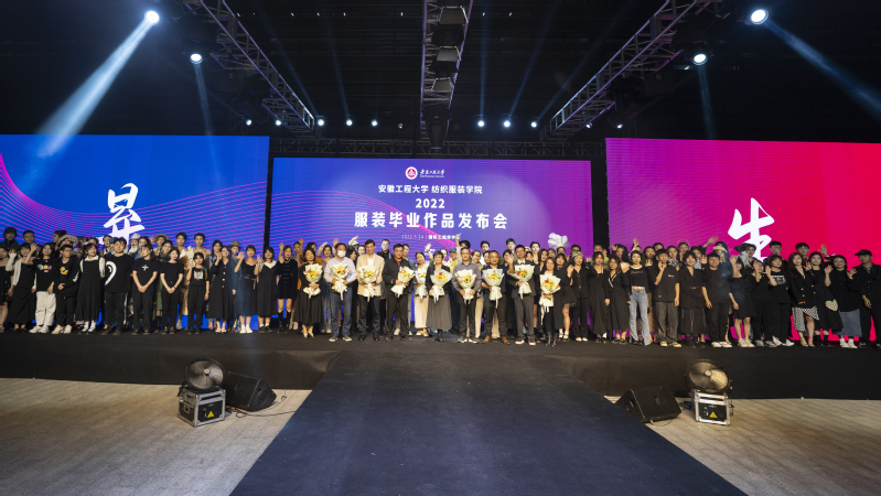 本次活动由纺织服装学院主办,校党委宣传部、教务处、学工部、团委、国际工程师学院管委会、机械工程学院(人工智能学院)、电气工程学院协办。发布会以“昪•生”为主题, 共发布2022届毕业生设计作品50个系列94套服装,其中男装22套、女装62套,童装10套,由四个年级服装表演专业的48位同学倾情演绎。这些毕业作品以多元化为扩散点,把多元化设计理念通过结构、重塑、解构等方式表现出来。设计师巧妙地融入“国潮”元素,将敦煌壁画、中国山水、自然仿生、复古混搭等设计灵感与扎染工艺、面料再造等表现手法相结合,从而使得时装作品既传承了文化底蕴,又焕发出新的生命力。本次时装秀不仅有系列服装,也有潮流单品,还首次加入了3组童装系列。青年学子穿上本届毕业生设计的作品,他们将青春的色彩与美丽绽放在秀场,观众挥舞着荧光棒,与T台的灯光交相辉映,构成一幅流动的青春画卷。