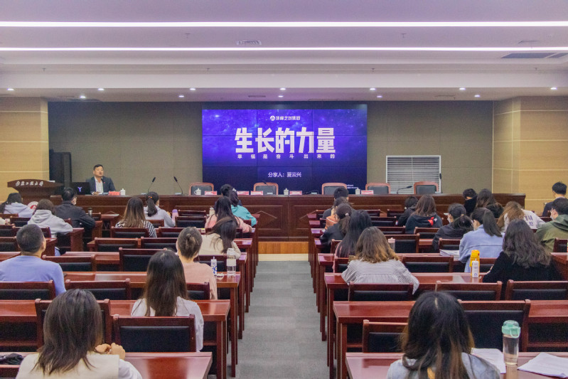 夏云兴以“生长的力量”为题,用一粒种子为喻,传达每个人都应通过不断地奋发向上努力成长为一棵参天大树的内涵。他现身说法,讲述自己虽身患残疾,但不屈命运,怀揣三个梦想并努力追梦的动人事迹。他通过火把、画画、自行车三个物件讲述了艰辛求学之路上的温暖与感恩,启迪其教育梦的萌生。他带着生存、创业、热爱的信念,促使其从追梦人转变为造梦人;“没有爱就没有真正的教育”,20多年来他所创办的顶峰教育改变了4万多名学生的命运,帮助他们实现大学梦、艺术梦。在已经取得外界看来的成功时,他仍心怀感恩,回报家乡,受使命召唤投身于乡村振兴的伟大事业,用自身之所长、尽个人之力量,探索乡村发展带动致富新路径。在总结其取得成功的原因时,他表示是凭着“自强不息的奋斗精神”“不坠梦想的青春力量”“不负时代重任的使命担当”。他勉励同学们,要奋发有为、积极进取,将自身梦想与国家梦有机结合,到广阔的乡村振兴大舞台大显身手。活动现场,气氛热烈,台下掌声阵阵,同学们纷纷为学长点赞。