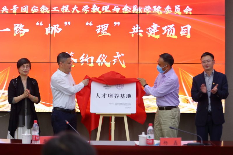 作为市校共青团“1+14”实践育人共建项目的重点内容,中国邮政储蓄银行芜湖分行团委和安徽工程大学数理与金融学院团委在现场签订了“一路‘邮’‘ 理’”共建项目协议,数理与金融学院党委书记周毅仁与杨志强共同为人才培养基地揭牌。中国邮政储蓄银行芜湖分行团委书记张纯介绍共建背景,以及思想教育、志愿服务、“青春共建共享”三个平台建设方案和分月年度工作计划。杨志强介绍该行的基本情况和发展成绩,希望以此为契机,推进青年将理论知识与实践锻炼相结合,达成共建共赢共享的目标。数理与金融学院学生代表发言并表态要在实践和服务中不断学习、成长。