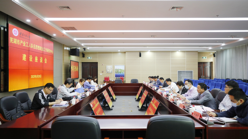 本网讯 为深入贯彻落实习近平总书记关于产业工人队伍建设工作的重要指示精神,持续深化校市合作,加强我校产业工人队伍思想政治工作研究中心建设,5月20日,学校在图书综合楼201会议室召开芜湖市产业工人队伍思想政治工作研究中心建设座谈会。芜湖市人大常委会副主任、市总工会主席董萍,市总工会党组书记、副主席王满平,市总工会党组成员、副主席张洪庆,我校党委书记张志宏,党委副书记苏国红出席会议。总工会办公室、宣教部相关负责人,学校办公室、宣传部、工会以及相关学院负责人参加会议。会议由苏国红主持。