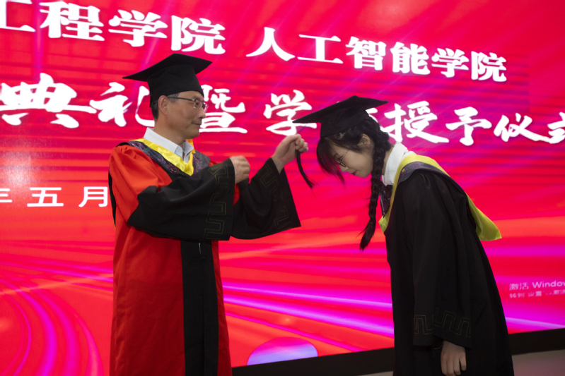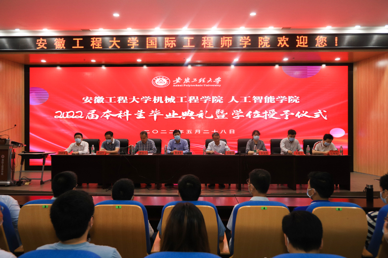 本网讯 5月28日,机械工程学院(人工智能学院)2022届本科生毕业典礼暨学位授予仪式在国际工程师学院报告厅举行。学校党委书记张志宏应邀出席毕业典礼,学院党政领导班子成员、各系部(中心)主任、教师代表、毕业班辅导员以及2022届毕业生参加典礼。典礼由学院党委书记伊长文主持。