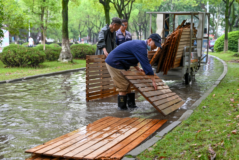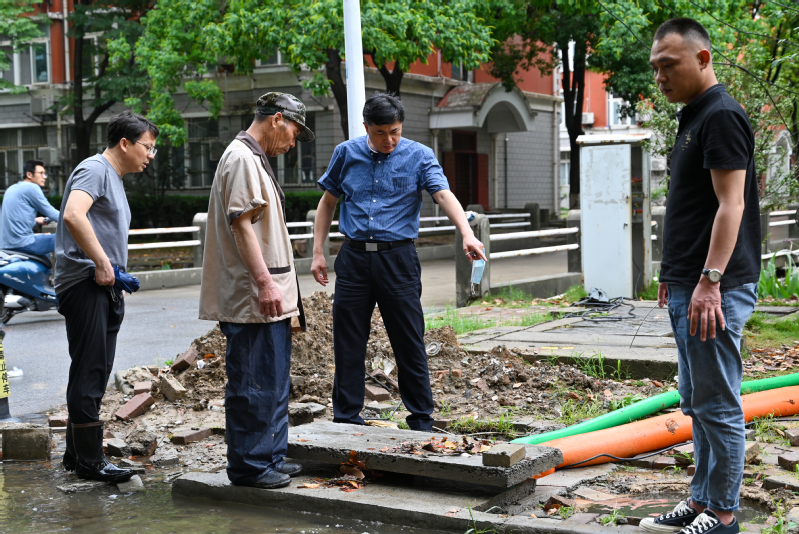 学校党委高度重视此问题,校党委书记张志宏,校党委常委、副校长郑健第一时间来到积水路段,现场办公,指挥排涝。后勤保障处相关负责人和有关工作人员于6月5日凌晨5点到达各个积水路段,通过水泵抽水、搭建临时通道等方式力求在最短的时间内将暴雨带来出行不便的影响降到最低。截至发稿时,我校大部分道路已经恢复通行。