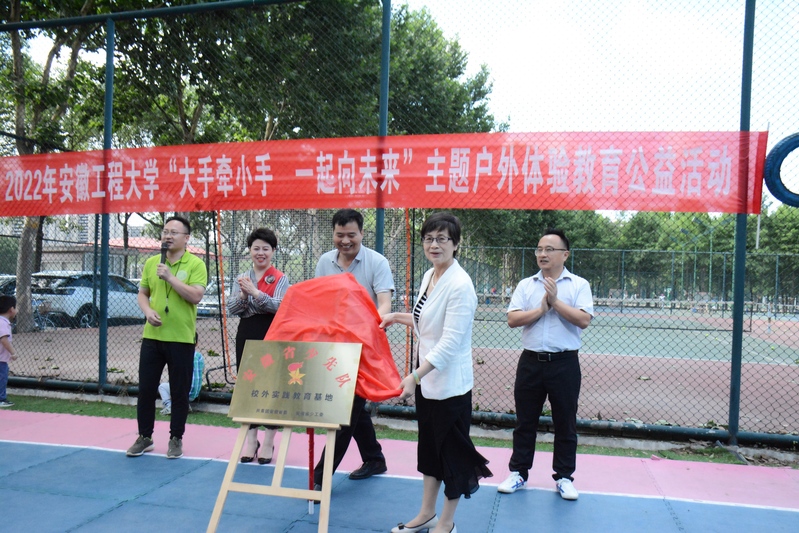 活动现场,苏国红和体育学院院长胡好在水杉营地为“安徽省少先队校外实践教育基地”揭牌。