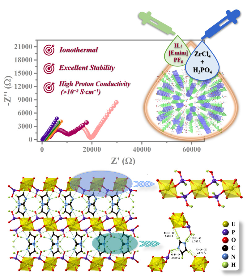 晶态材料是长程有序固态材料的总称,具有结构有序稳定、构效关系清楚、本征特性多样、物理内涵丰富、易于复合调控等特征。目前晶态材料研究正在向以功能为导向,通过结构设计和可控制备获得所需应用特性材料的方向发展。近年来,桂大祥以晶态材料为研究对象,以宏观性质(光、电及其复合性能)与微观结构(电子、原子和分子)之间内在关系为研究主线,致力于构建理论结合实验的研究方法揭示晶态材料宏观性能与微观结构之间的构效关系,深化对晶态材料功能特性和功能基元本质的认识,并在该领域取得了一定的研究进展。从“软硬酸碱”结合理论出发,通过筛选富质子的无机磷酸作为配体,高价态离子作为金属中心,基于新型绿色的离子热合成法设计并合成出一系列新型的具有优异结构稳定性和致密氢键网络系统的晶体化合物。该系列晶体在高温无湿和低温高湿的宽温域测试环境下均表现出优异的质子传导性能。这一系列研究成果不仅为新型宽温域高质导晶态材料的构筑提供崭新的设计思路,也为质子交换膜燃料电池领域的发展提供更多可能。