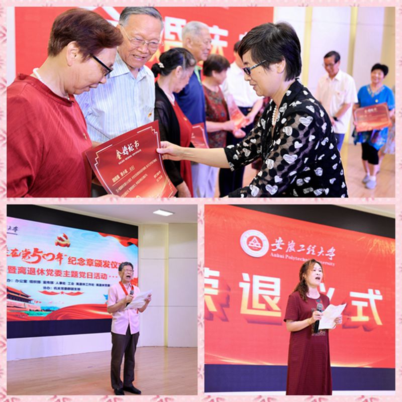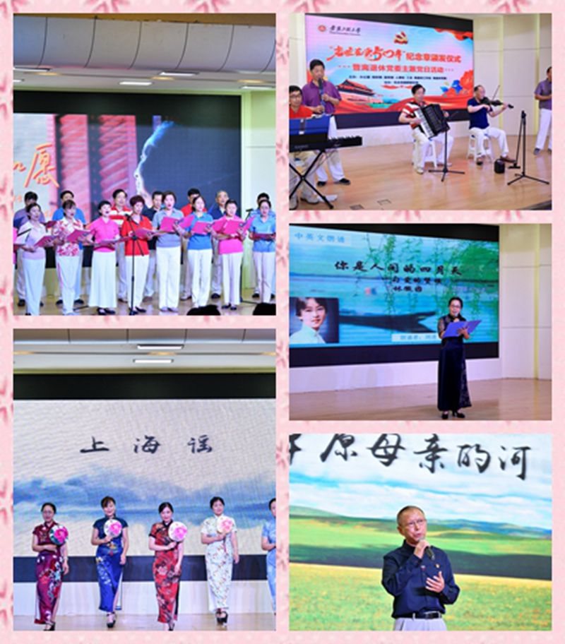 在新退休教职工的荣退仪式、金婚庆典活动和集体生日会环节。相关部门负责人为荣退教师颁发了纪念品,苏国红为6对伉俪颁发金婚证书,一曲《生日快乐》歌将现场气氛推向高潮。离退休老师们带来了双语诗歌朗诵《你是人间四月天》、旗袍秀、《红歌串烧》、男声独唱《父亲的草原母亲河》、合唱《如愿》等精彩表演。其中原创MV《如愿》在活动现场全网首发,以此片献给负重前行的父辈和一代代不忘初心、砥砺奋进的安工程人。