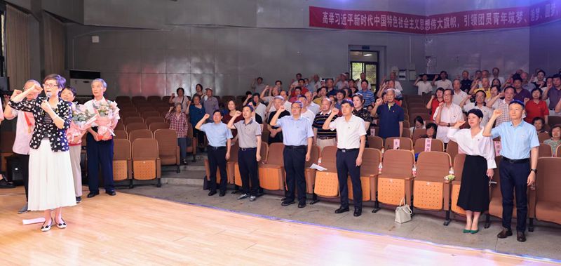 仪式上,张志宏为党龄达50年的6位老党员颁发“光荣在党50年”纪念章并献上鲜花以示祝贺。苏国红带领全体党员重温入党誓词。