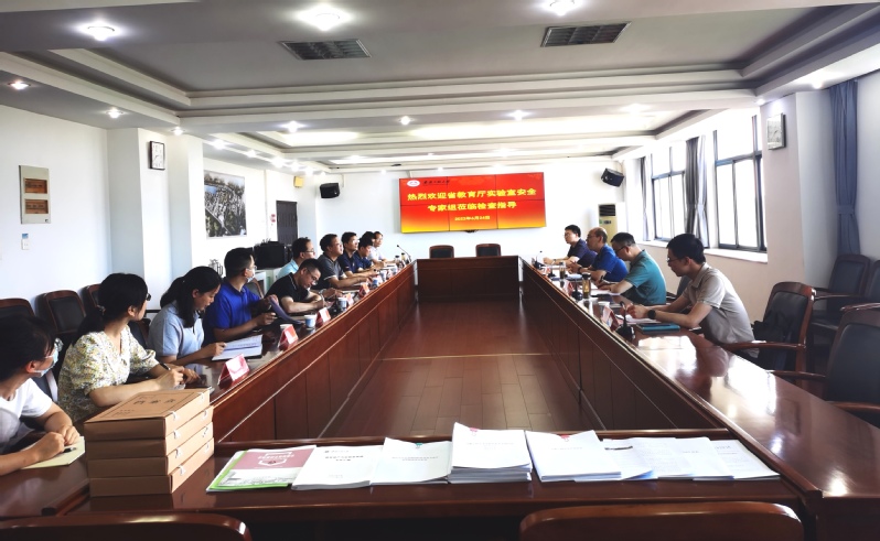 本网讯 6月24日,省教育厅专家组一行四人来校开展实验室安全现场检查工作。副校长叶常林出席现场检查会,化学与环境工程学院、生物与食品工程学院、材料科学与工程学院及教务处、科技处、保卫处、国有资产与实验室管理处等相关负责人参加相关活动。