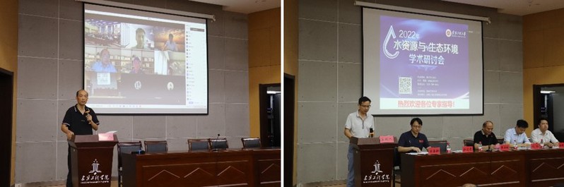 本网讯 6月25日,由我校主办、我校建筑工程学院承办的2022水资源与生态环境学术研讨会在C座3楼报告厅召开,探讨水资源与水生态环境所面临的热点问题,发布在这一领域取得的新成果。报告会采用线上线下相结合的方式。副校长费为银出席研讨会,科技处、研究生部、人事处相关负责人,建筑与工程学院负责人、相关专业教师、研究生及高年级本科生代表参加了现场会议。芜湖勘测设计咨询协会50余名建筑行业专家线上参加了学术会议。报告会由市政工程系主任张明主持。