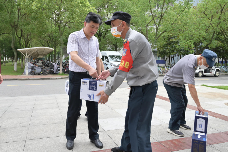 本网讯 7月7日,小暑至,盛夏始。校党委书记张志宏,校党委副书记、校长王绍武,校党委常委、副校长郑健带领办公室、保卫处、后勤保障处等部门负责同志冒着高温赴图书馆、门岗、食堂、宿舍、快递服务中心及超市等地看望慰问暑期留校学生和一线工作人员,检查校园安全工作。