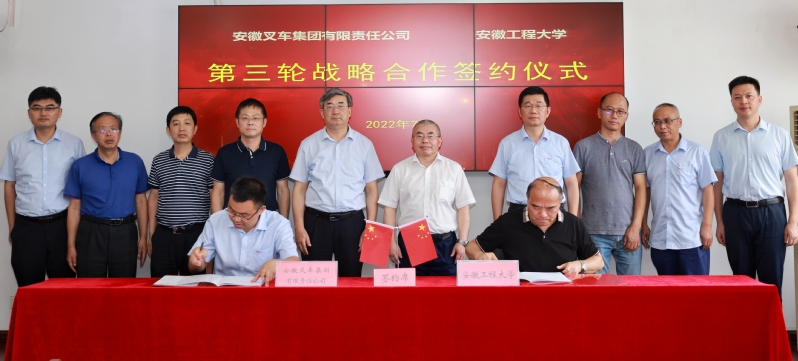 本网讯 7月14日,安徽叉车集团来我校签署第三轮校企战略合作协议,并就科技与人才合作等工作开展交流对接。安徽叉车集团党委书记、董事长、总经理杨安国,安徽合力股份有限公司党委副书记、董事、总经理周峻,安徽叉车集团总经理助理毛献伟,校党委副书记、校长王绍武,校党委常委、副校长费为银出席活动,叉车集团人力资源部、技术中心,我校办公室、教务处、科技处、研究生部、人事处、学生处、社会合作处主要负责人参加有关活动。