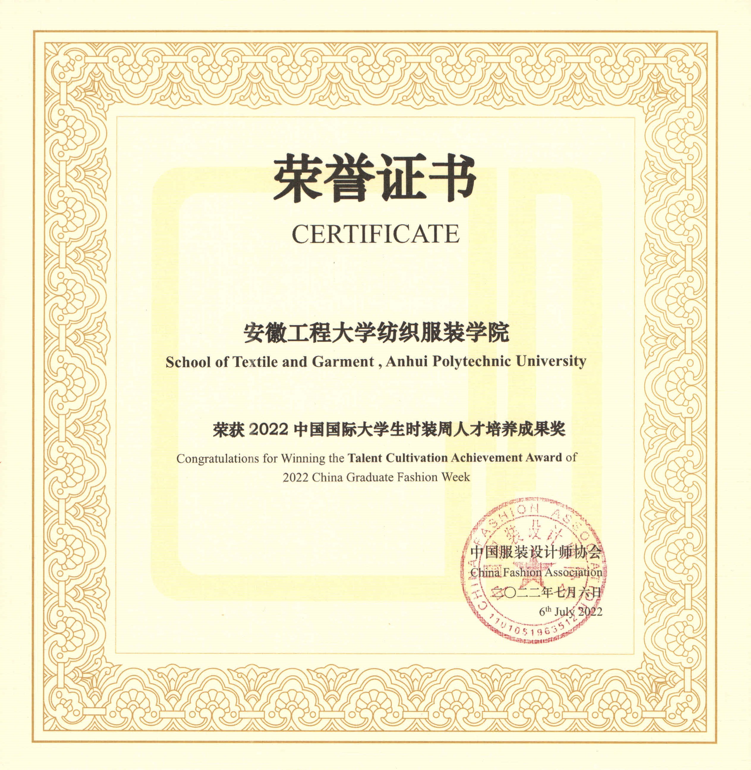本网讯 7月盛夏,我校纺织服装学院服装与服饰专业2022届毕业作品“云上”开秀中国国际大学生时装周。在2022中国国际大学生时装周系列奖项中,纺织服装学院荣获2022中国国际大学生时装周人才培养成果奖。纺织服装学院陈旭展同学荣获服饰搭配奖专项奖。