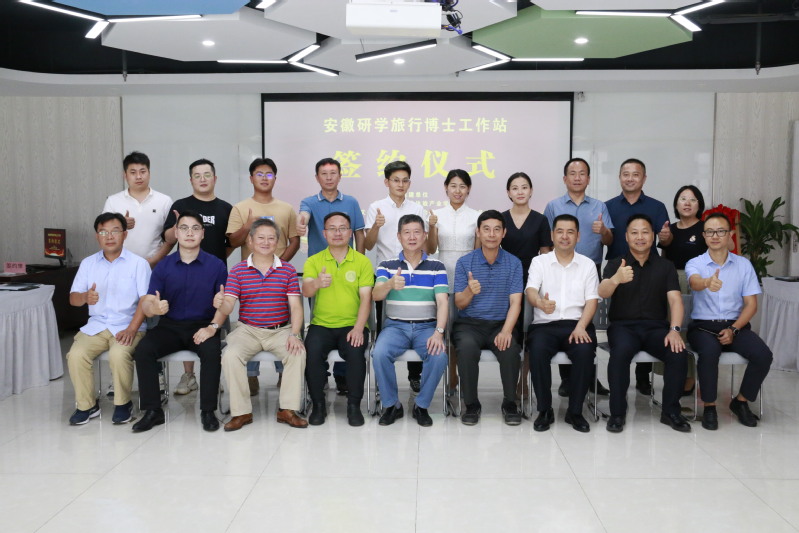 本网讯 近日,我校体验产业学院与安徽省文化和旅游产业促进会研学旅行工作委员会共建“安徽研学旅行博士工作站”揭牌,双方签署战略合作协议,共同助力安徽研学旅行高质量发展。我校体验产业学院薛保红教授、省文旅促进会、省文旅促进会研学工委会以及省内著名研学旅行营地、基地等相关领导共同出席了此次签约揭牌仪式。