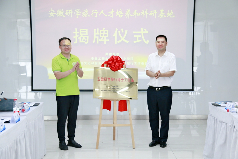 秘书长胡宗波、院长薛保红分别代表省文促会研学工委和安徽工程大学体验产业学院签署战略合作协议;院长薛保红、会长孙辉为安徽研学旅行博士工作站揭牌;轮值会长胡胜与张旭主任为“安徽研学旅行人才培养和科研基地”揭牌。
