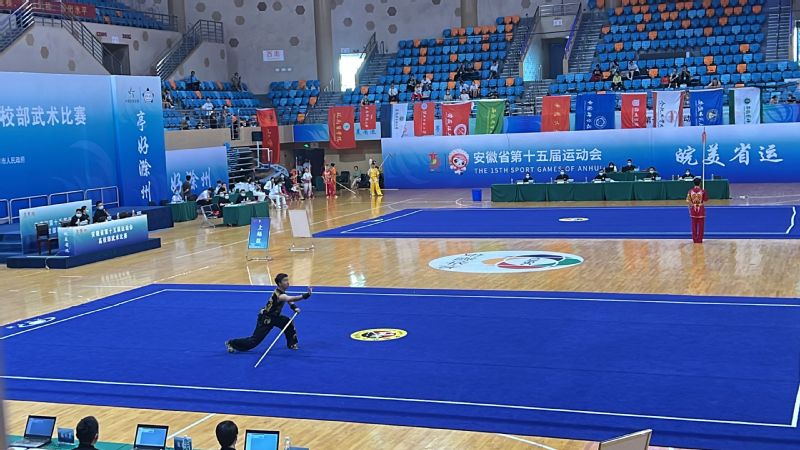 四年一届的省运会是安徽省最高级别的体育赛事。本次运动会高校部武术比赛吸引了来自全省54所高校共531名运动员参加。我校学生武术队由体育学院院长胡好领队,主教练汪韧、体能教练张航两位老师指导的10名队员参加比赛。