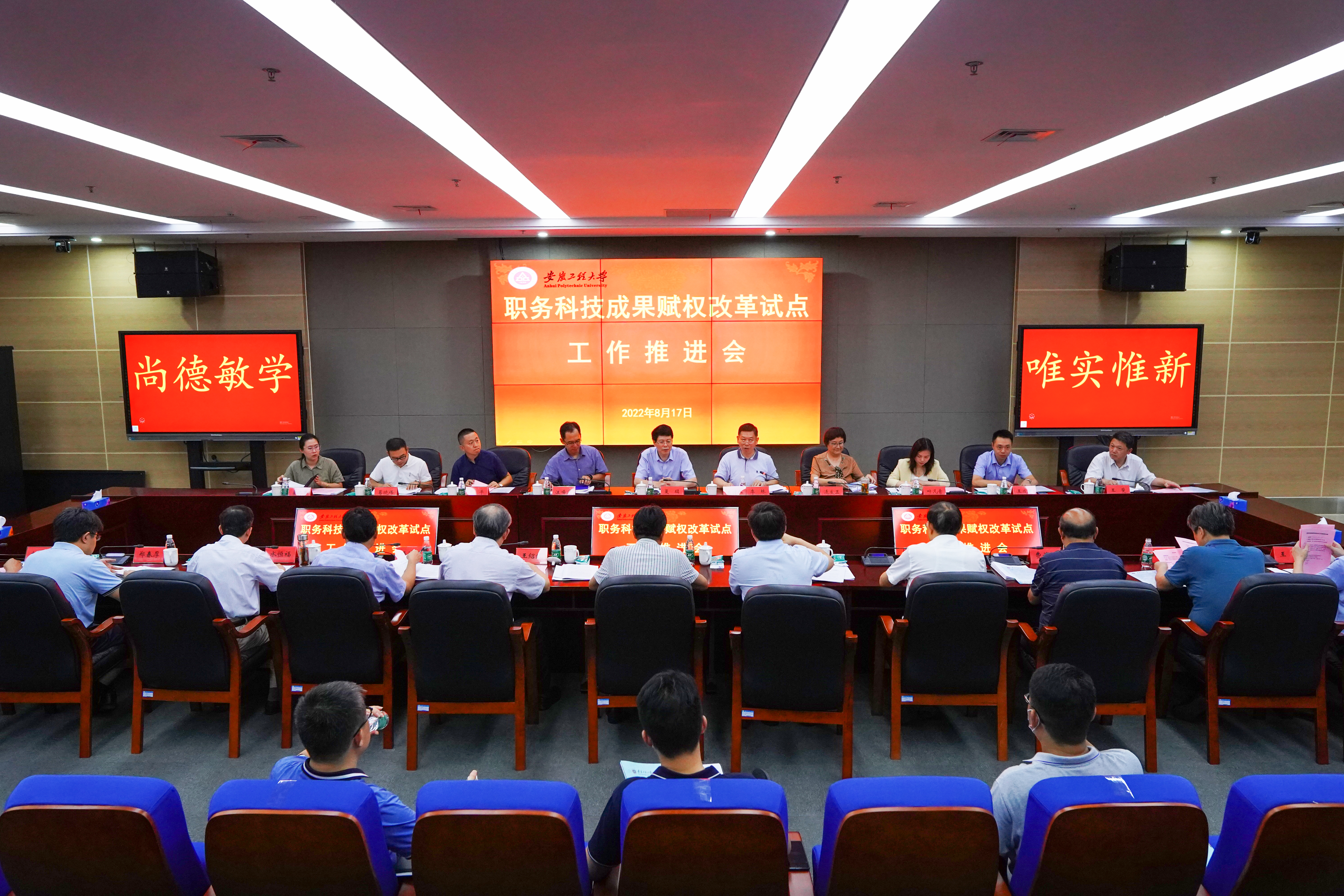 本网讯 8月18日,安徽省职务科技成果赋权试点工作推进会在学校图书馆201会议室召开,省科技厅、省教育厅、省财政厅、省人力资源社会保障厅分管负责同志及相关业务处室负责同志;安徽农业大学、安徽工业大学、安徽大学、安徽工程大学、安徽医科大学5家试点高校分管负责同志及相关部门负责同志参加会议,省科技厅党组成员、副厅长、省外专局局长夏辑到会并讲话,会议由省科技厅成果转化与区域创新处处长李林主持。
