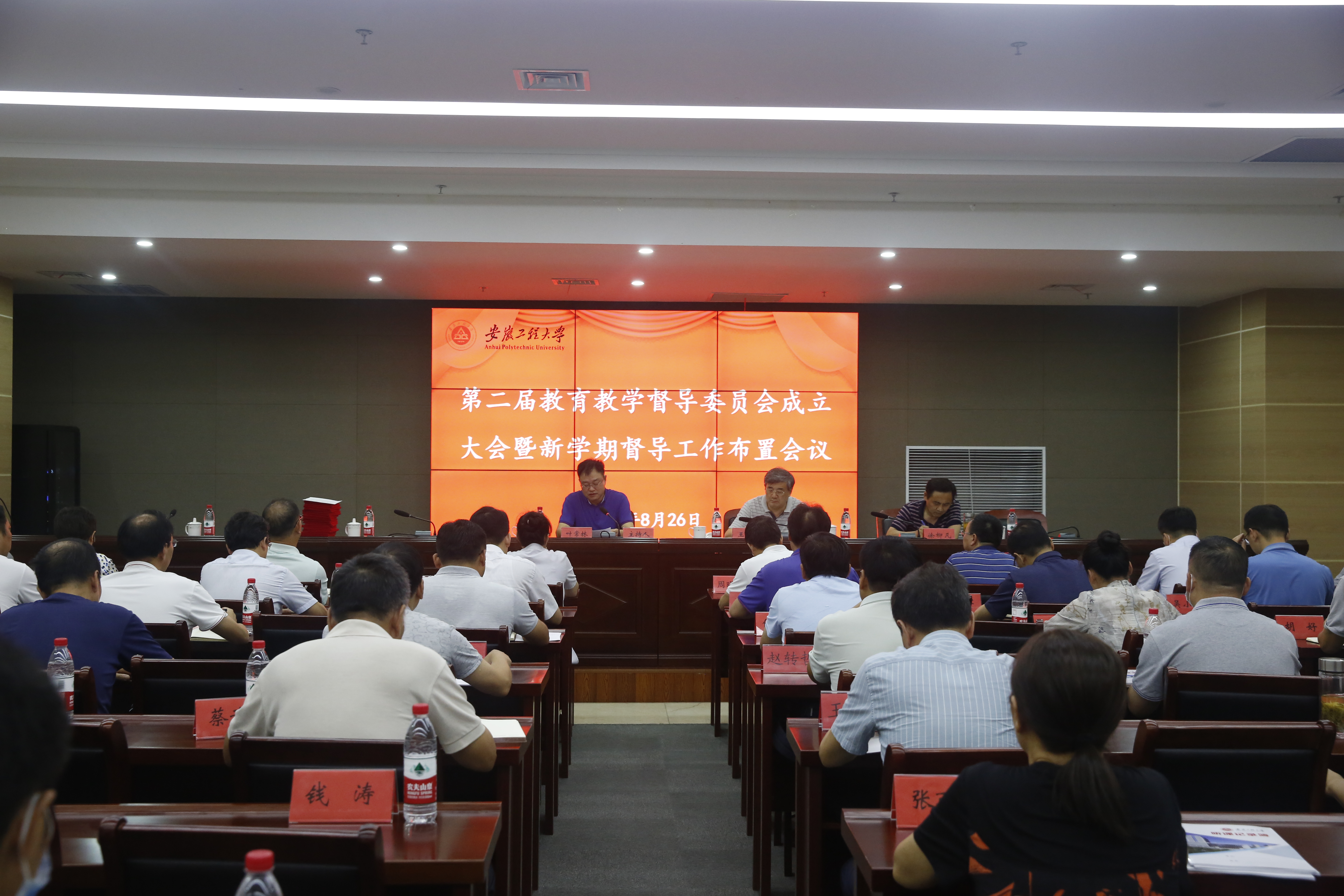 会上,发展规划与质量评估处处长张春宣读了《关于成立安徽工程大学第二届教育教学督导委员会并聘请王传玉等18位同志为督导专家的决定》。教务处、研究生部负责人分别就本部门本学期重点工作计划进行了介绍。校本科督导组组长王传玉、校研究生督导组组长唐铃凤就本学期本科生、研究生督导工作安排进行了汇报。