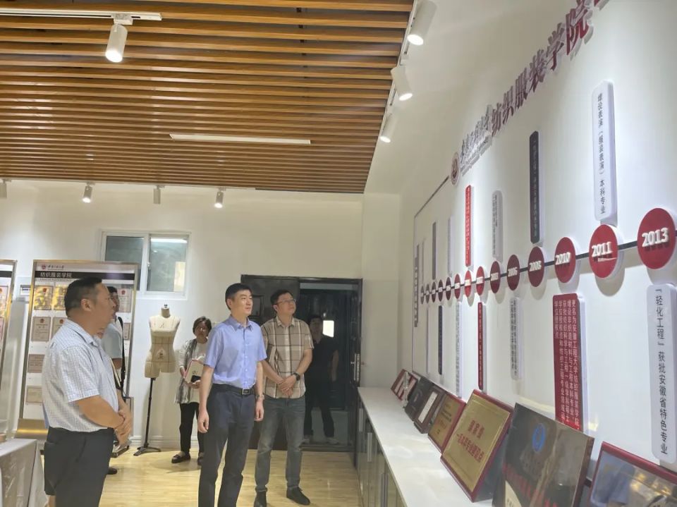 会后,黄万里一行在纺织服装学院相关负责人的陪同下,参观了纺织服装学院展厅和实验室。