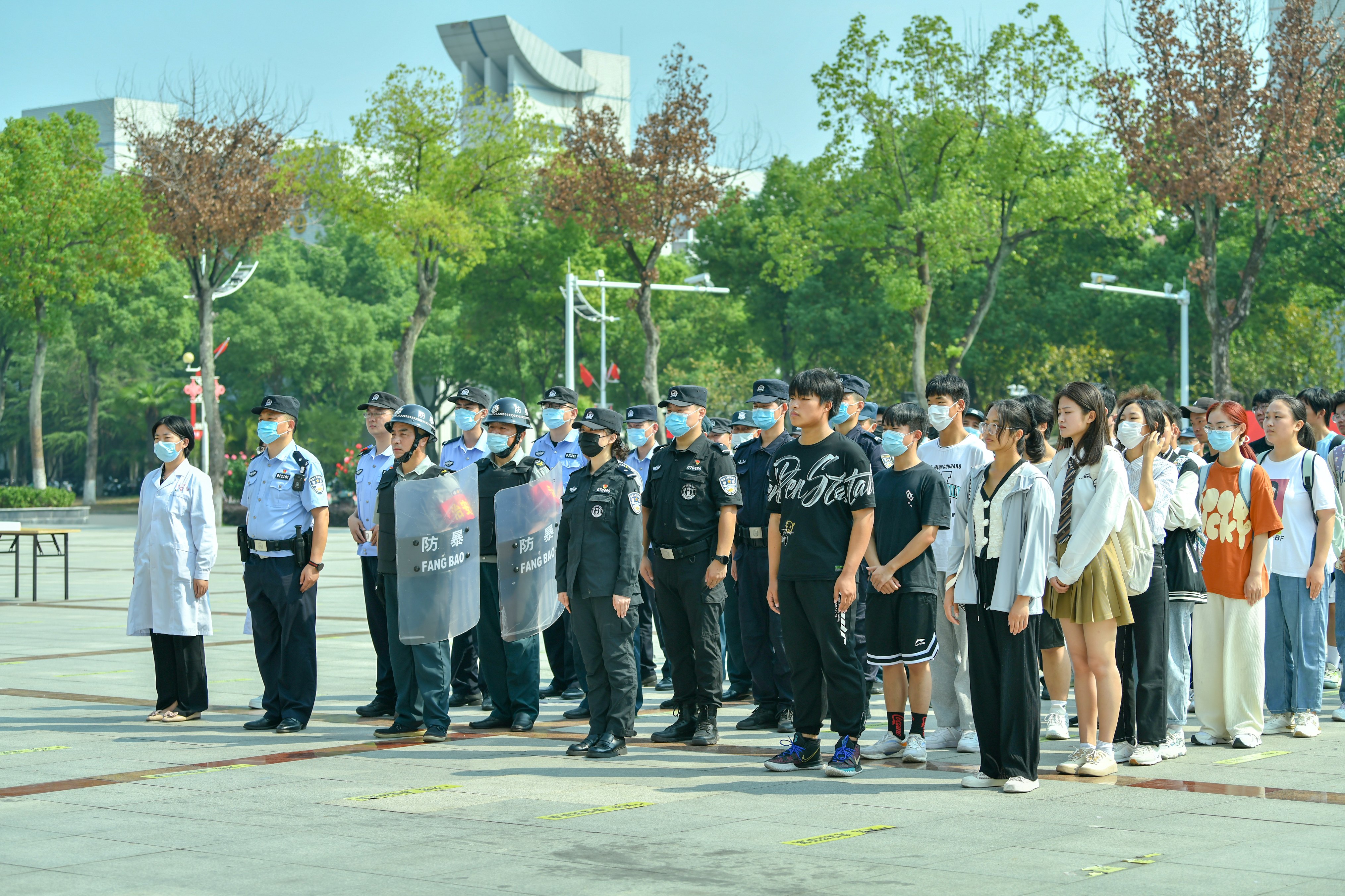 本网讯 为提高全校师生在发生暴力恐怖事件时的应急处突能力,进一步深化全校师生的反恐防暴意识。9月30日,芜湖市鸠江区反恐宣传进校园活动在学校图书综合楼广场举办。本次活动由芜湖市公安局鸠江分局城东派出所主办,学校保卫处、宣传部协办。城东新区派出所巡逻警组、特警支队巡逻警组,学校保卫处、警务站、校医院等相关人员参加活动。