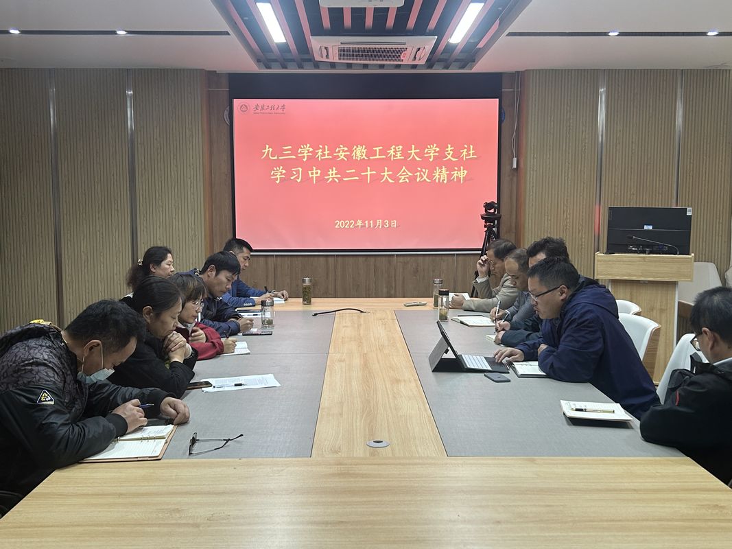 本网讯 11月3日,九三学社安徽工程大学支社召开学习贯彻中共二十大精神专题会,会议由支社主委葛愿主持,支社班子成员和部分社员参加学习会。