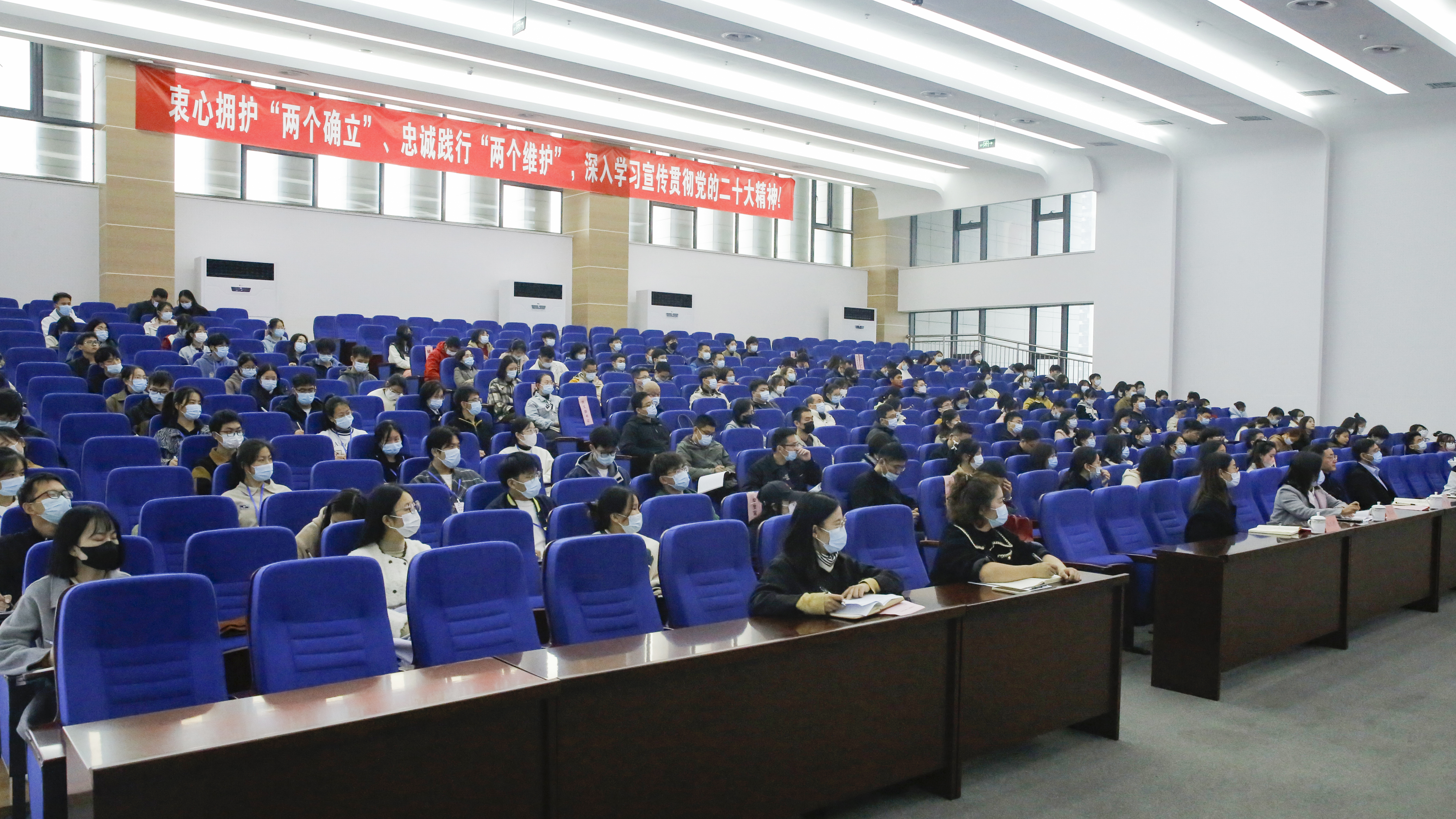 党支部书记培训班的学员,辅导员代表,马克思主义学院教师、研究生代表,党的二十大精神青年宣讲团成员,“青马工程”学员代表,各学院学生代表,全媒体学生记者代表,宣传部党支部全体党员参加会议。