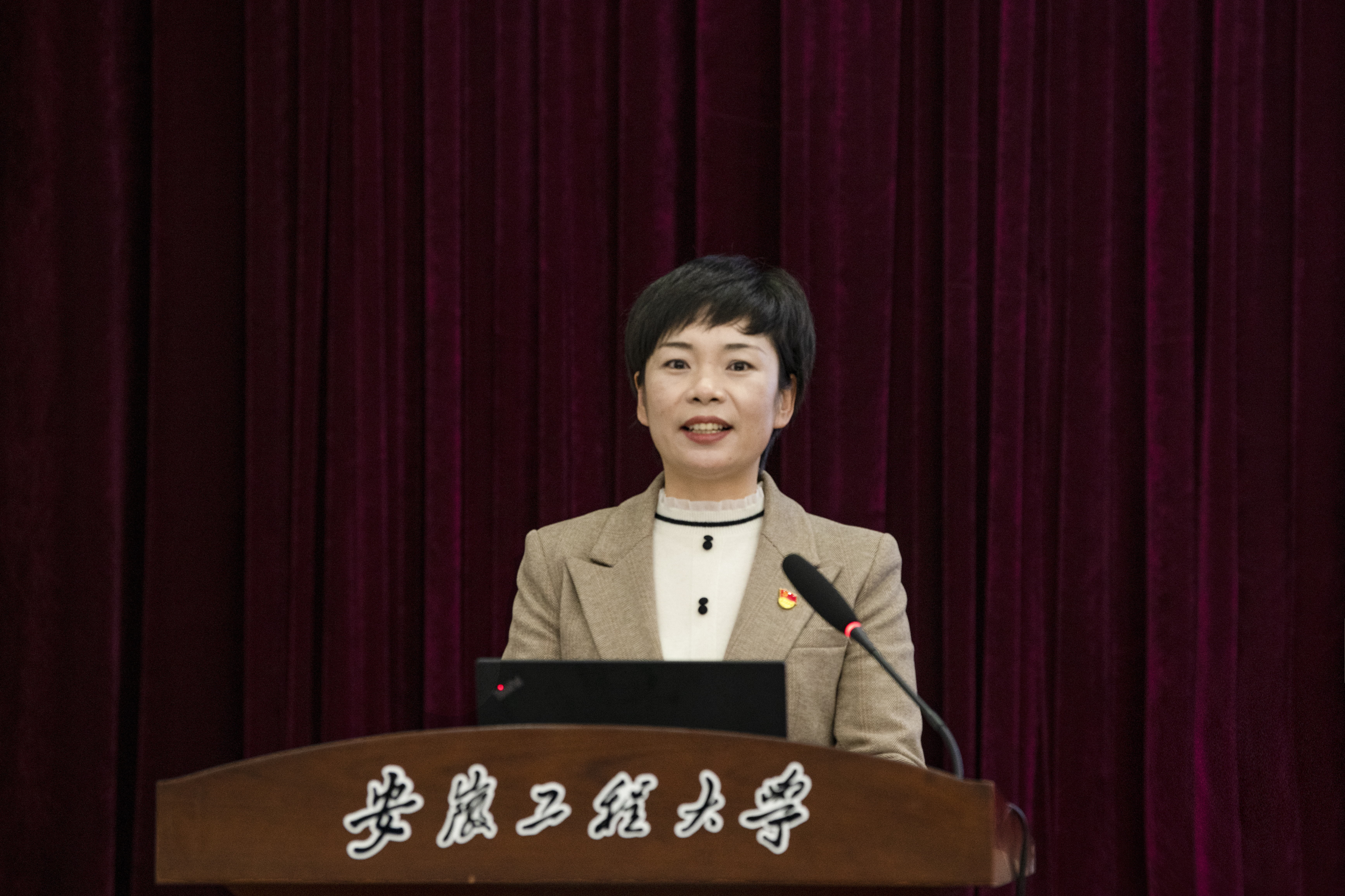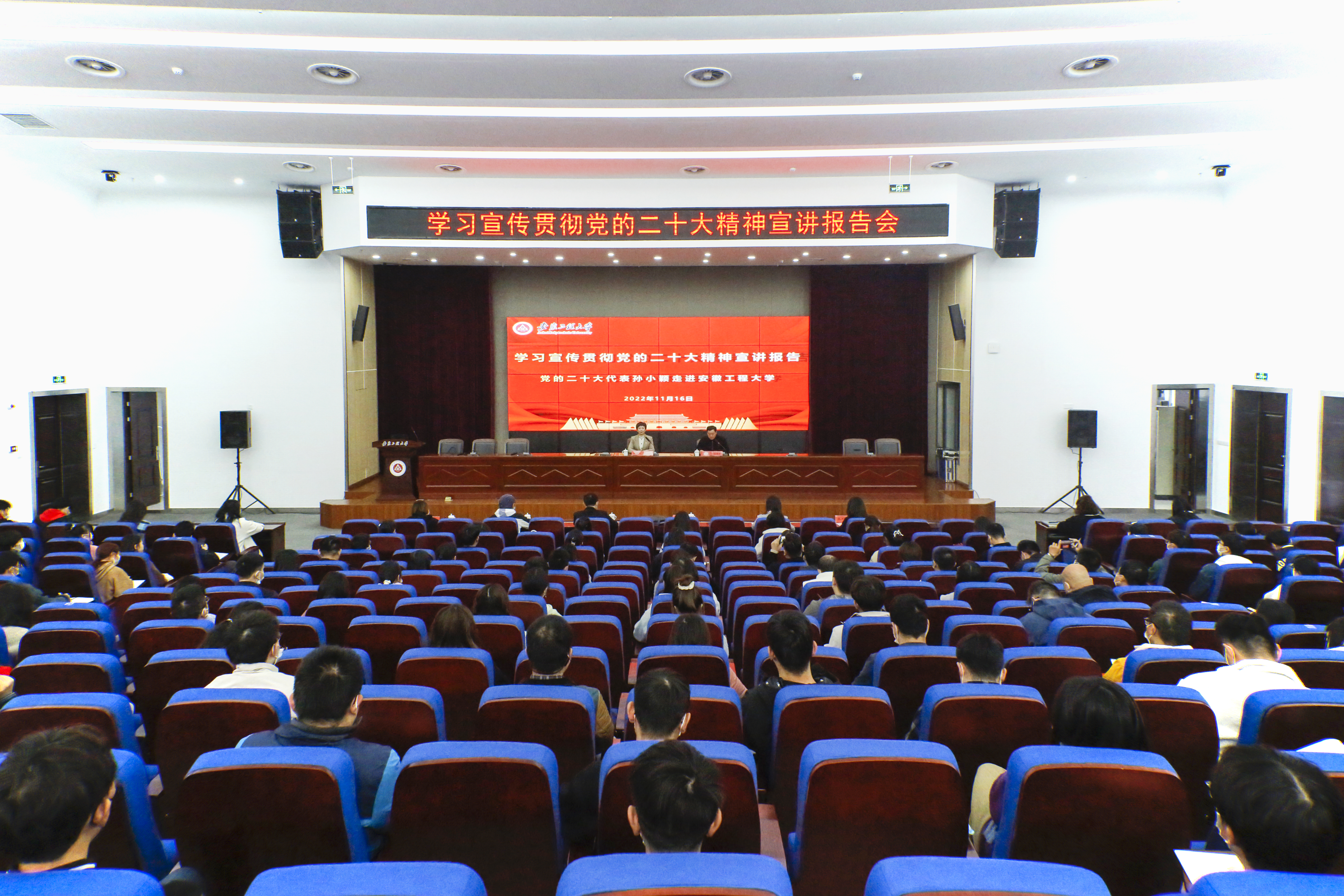 孙浩然在主持时简要介绍了海螺集团的发展情况与孙小颖的成长经历。他指出,孙小颖的报告生动亲切、主题鲜明、内涵丰富、系统透彻、切合实际,是一次鼓舞人心、催人奋进的宣讲报告,对我校师生深刻领悟党的二十大提出的新思想新论断、作出的新部署新要求,推动党的二十大精神在学校落地见效有重要意义。他要求,要在全面学习、全面把握、全面落实上下功夫,准确领会党的二十大精神的核心要义,学用结合,把个人理想追求融入民族复兴伟大征程;要从党的二十大精神中汲取精神力量,紧紧围绕习近平总书记提出的“五个牢牢把握”的重要要求,在全面建设社会主义现代化国家的火热实践中汇聚青年力量。