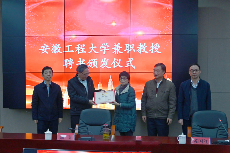 本网讯 11月23日,应人文素质教育中心邀请,我校兼职教授周飞为校第三期“经典悦读”班师生作题为《科学思维 人文关怀》的专题报告。校党委副书记苏国红出席报告会并为周飞颁发“安徽工程大学兼职教授”聘书。人事处、人文学院相关负责人出席授聘仪式。