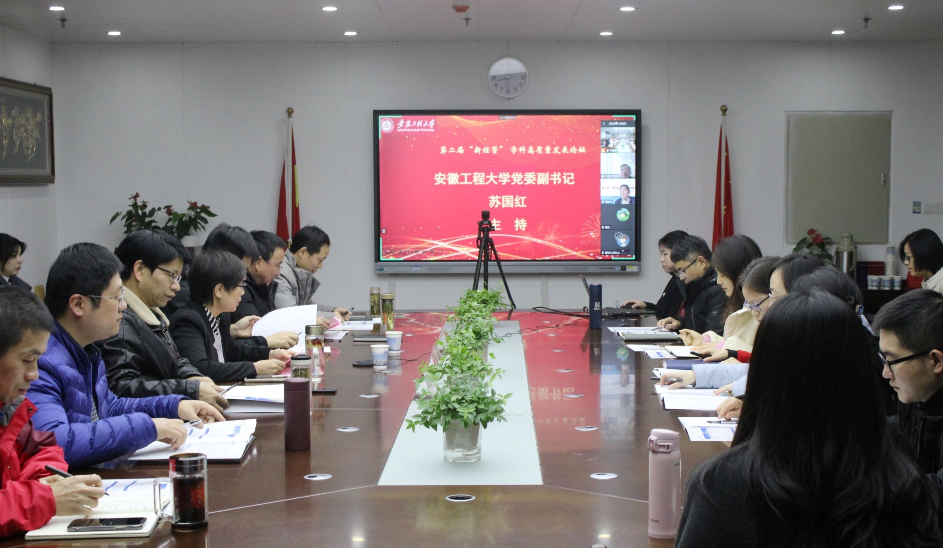 本网讯 12月3日,由我校主办,科技处、研究生部、经济与管理学院承办,以“面向2035年的中国经济变革与管理聚焦”为主题的第二届“新经管”学科高质量发展论坛在我校通过线上线下相结合的方式召开。本次论坛旨在加深对新时代下中国未来经济变革的再认识、管理聚焦的再思考。校党委副书记、校长王绍武,校党委副书记苏国红出席活动。校科技处、研究生部负责人,经济与管理学院党政班子成员和300余名相关领域专家和师生参加活动。开幕式由苏国红主持。