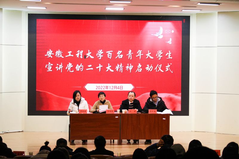 本网讯 12月4日,学校百名青年大学生宣讲党的二十大精神启动仪式在学术报告厅举行。校党委副书记苏国红出席活动,宣传部、校团委、马克思主义学院相关负责人,四位指导教师,青年大学生宣讲团全体成员参加活动。