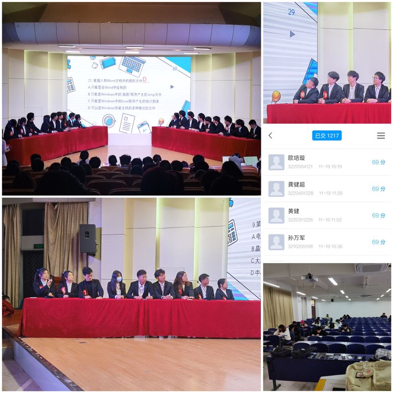 计算机基础知识竞赛作为学校“赤铸青创”品牌项目,为学生提供了展示个人计算机知识能力的舞台,目前已传承举办了二十届。本次比赛共分为初赛、复赛、决赛三个阶段,初赛阶段共吸引全校1900余名学生报名参加,初赛采用学习通软件进行线上限时答题,选手排名前80名进入复赛。复赛以线下考试的形式进行,共选拔出18名选手进行决赛。决赛阶段每3名选手分成一组,共6组学生进行比赛。决赛分抢答题、风险题环节,题型分为选择题、判断题、填空题等,参赛选手展示出扎实的基础知识功底,现场气氛紧张热烈。