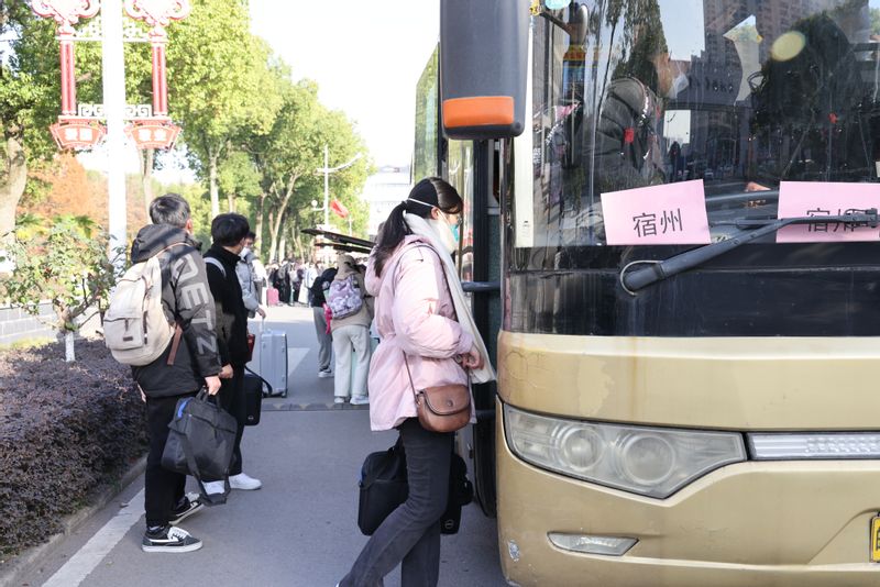 本网讯 12月15日上午,学校包4辆大巴,分阜阳(亳州)、蚌埠(淮北)、合肥(六安)、宿州4条线路送近200名学生提前返乡,解决同学们“一票难求”的困扰。