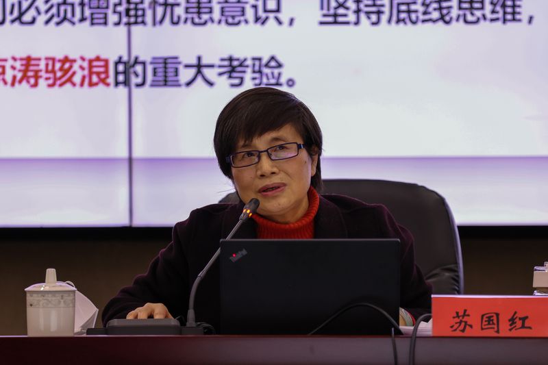郑健在主持报告会时指出,苏国红教授长期从事马克思主义研究工作,近期在《安徽日报》上以“始终保持马克思主义的蓬勃生机和旺盛活力”为题发表理论文章。她的宣讲报告主题鲜明、内涵丰富、系统透彻、切合实际、生动亲切,具有很强的政治性、理论性、实践性和指导性,对我们认真学习宣传贯彻党的二十大精神,努力推进高等教育高质量发展具有较强的指导意义。