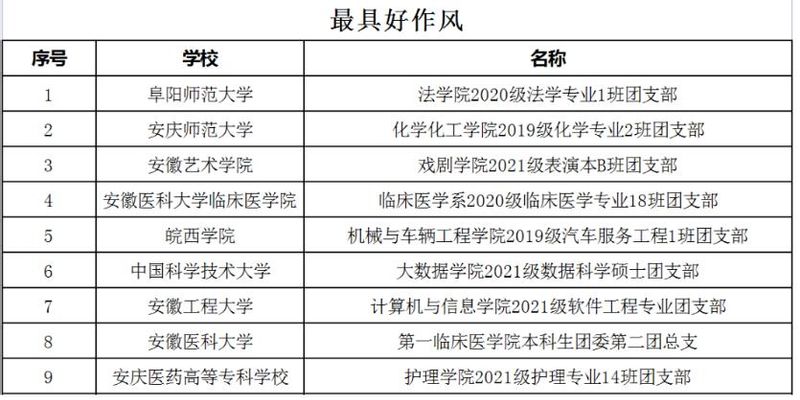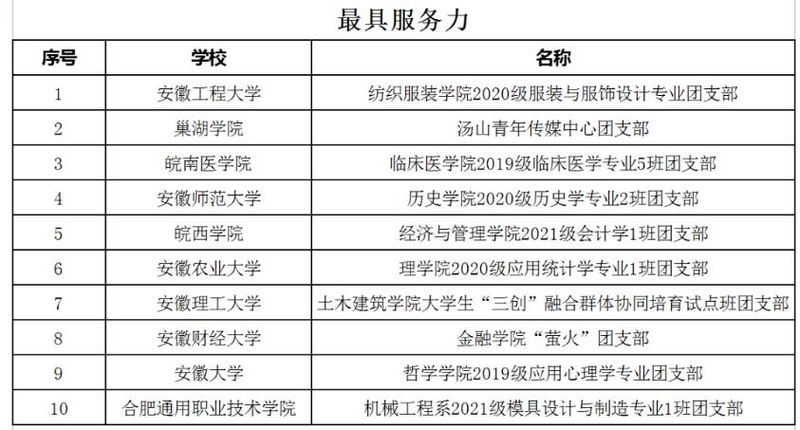 本网讯 近日,团安徽省委学校部、安徽省学联秘书处公布了2022年安徽省高校联通杯“活力团支部”遴选结果,我校纺织服装学院2020级服装与服饰设计专业团支部、计算机与信息学院2021级软件工程专业团支部入选。