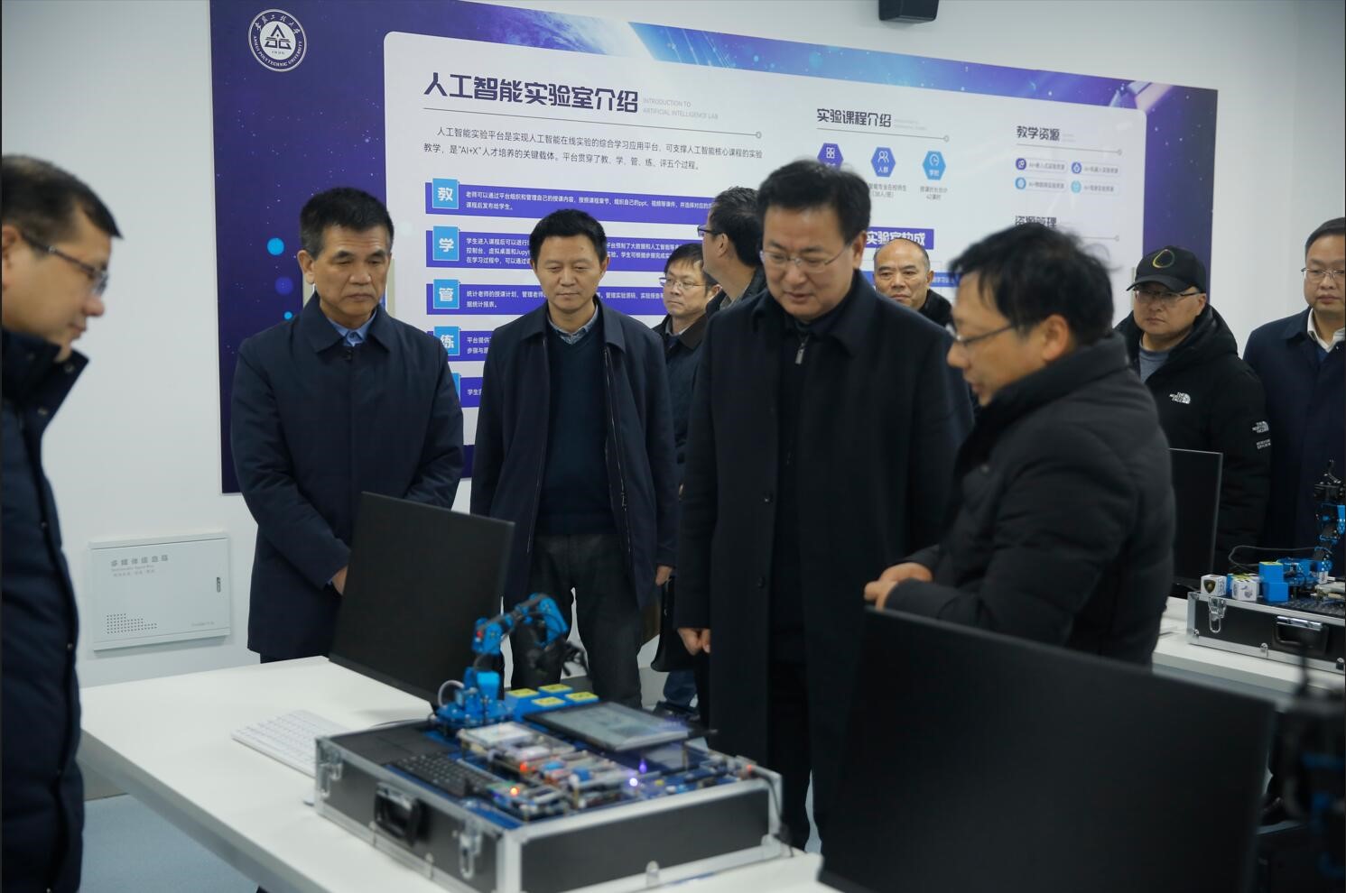 黄友锐一行实地先后参观国际工程师学院校区汽车电子实验室、车辆创新实验室、导航控制实验室、可编程控制器实验室、智慧教室和校园运行中心等,并就校区规划和智慧校园建设情况进行了现场交流。