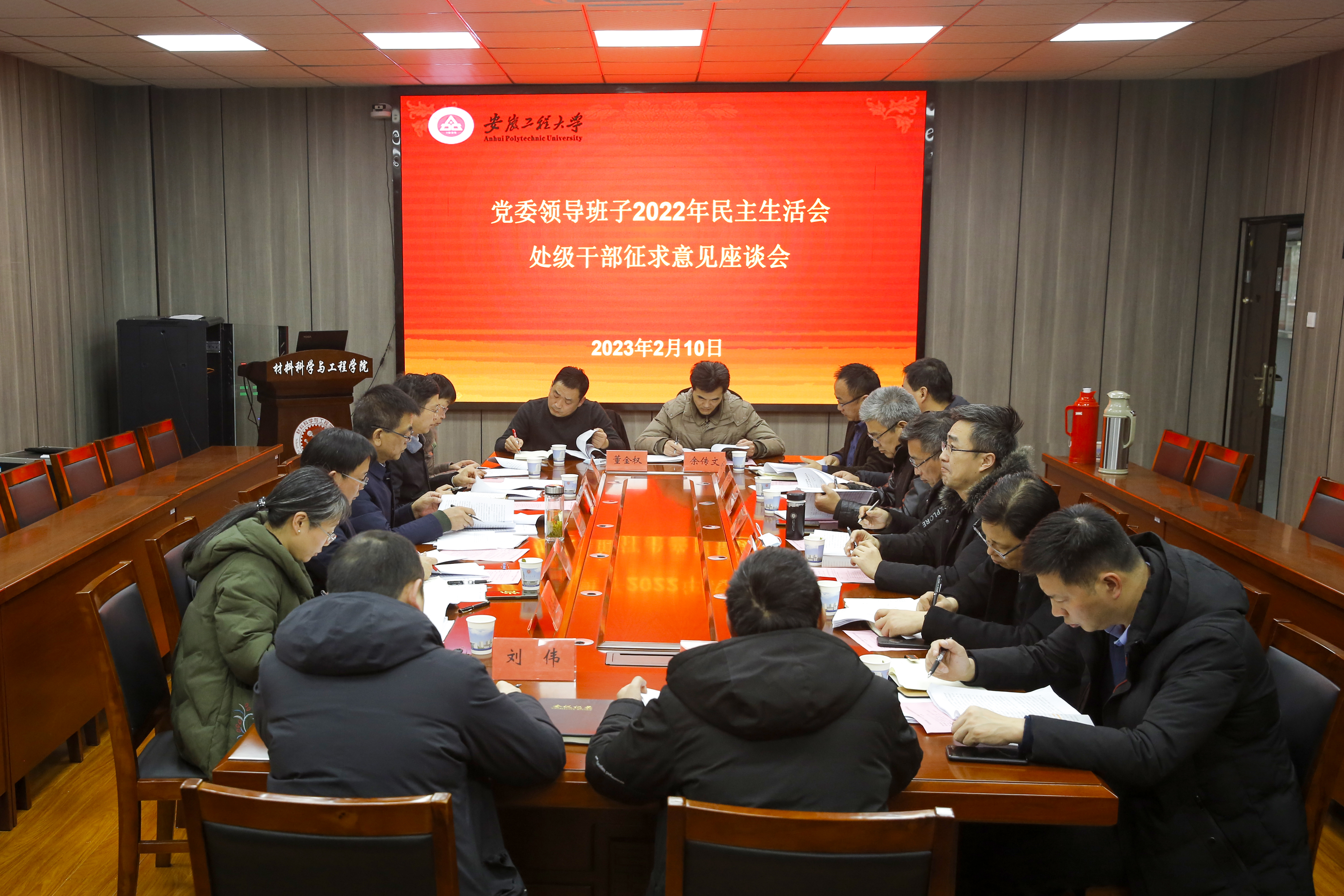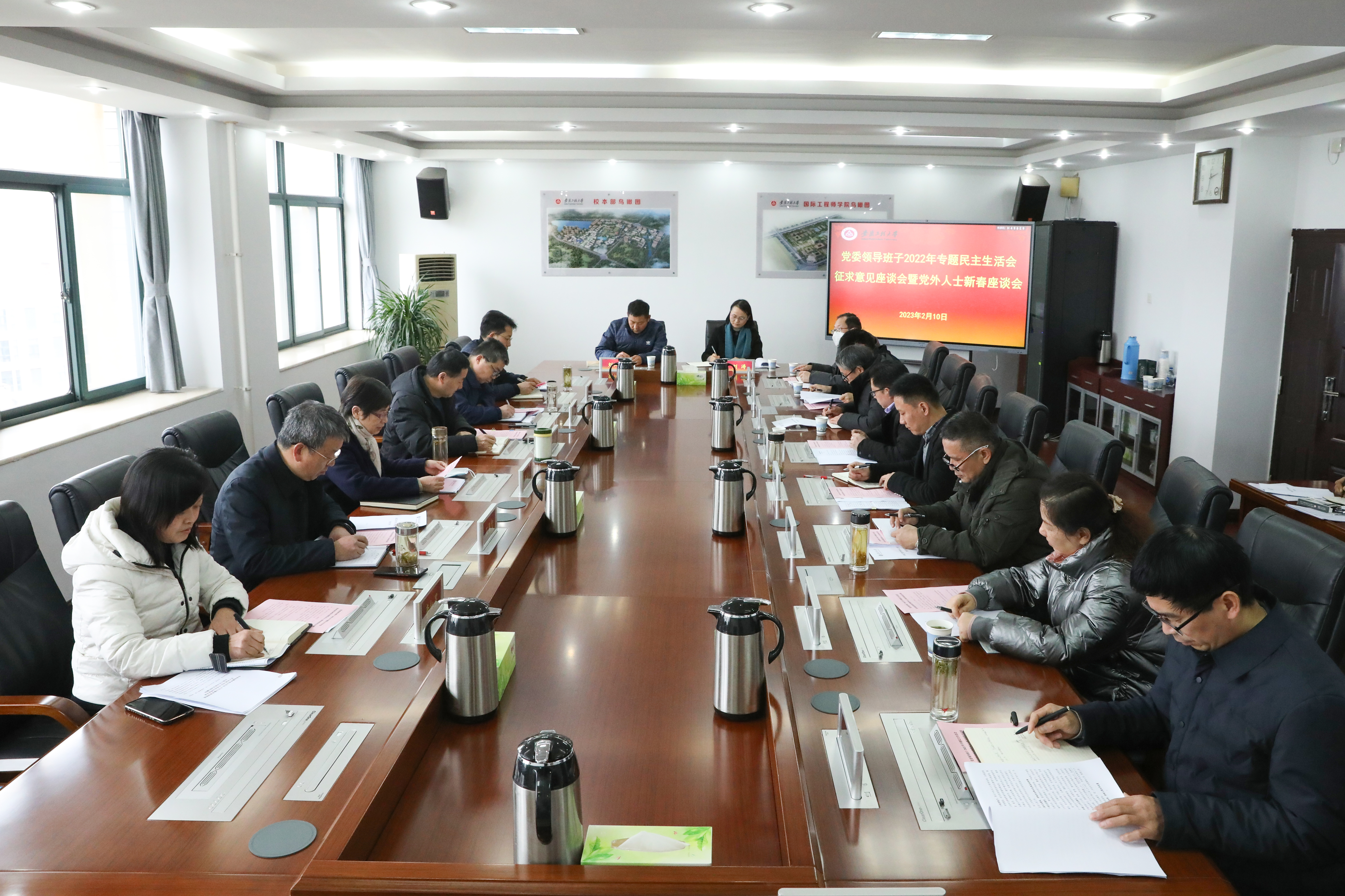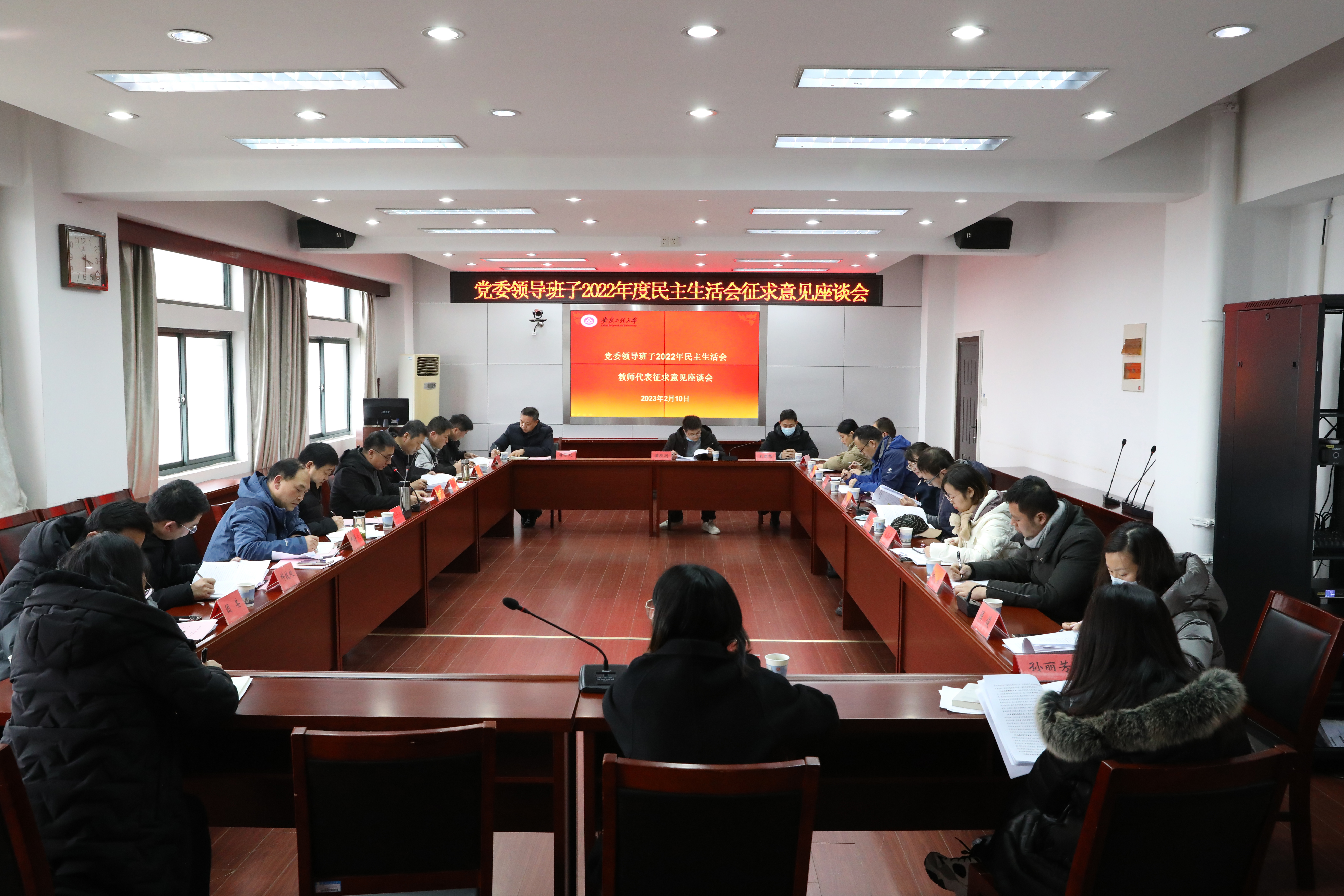 本网讯 2月10日,学校召开党委领导班子2022年民主生活会征求意见座谈会,学校党政领导张志宏、卢平、苏国红、费为银、郑健、程双四分别参加离退休老同志代表,党务口、行政口代表,党外人士代表,高层次人才、青年教师(含辅导员、管理人员)、党支部书记、教代会执委和工会委员代表座谈会。