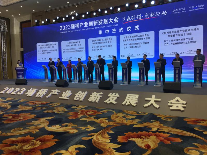 在项目签约和揭牌仪式上,我校与埇桥区合作的6个项目进行了集体签约,签订战略合作协议旨在推进乡村振兴、加强干部人才交流、开展科技研发、促进成果转化等领域合作,发挥我校人才、科技等优势,为埇桥区产业创新发展助力。