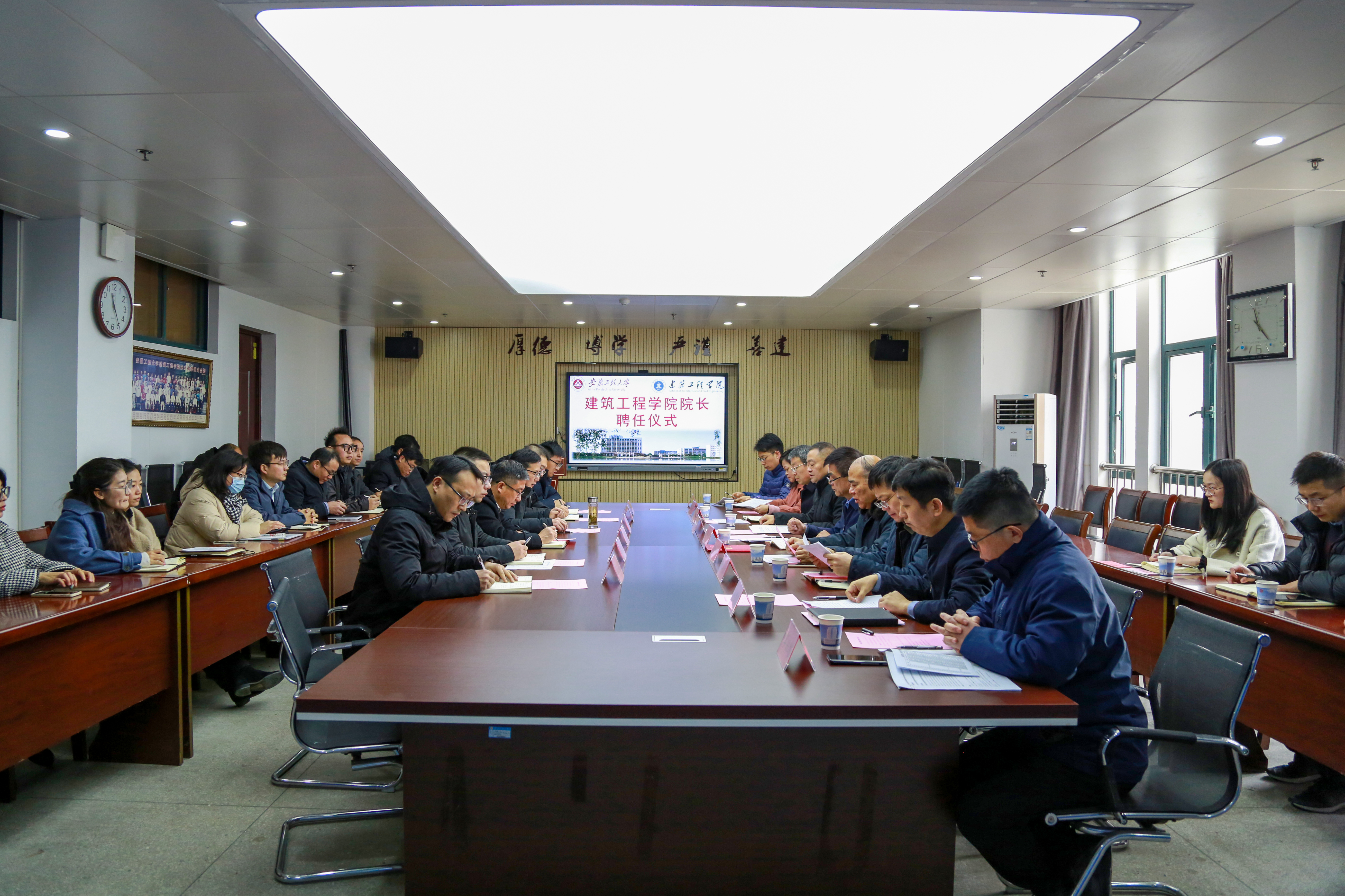 徐达奇同志在发言中表示坚决拥护和服从党组织决定,感谢学校党委多年来的培养和信任,感谢十二年来全院师生的大力支持,今后将一如既往地为学院发展做贡献。曾磊同志作表态发言,感谢学校的信任和支持,今后将扎根安徽工程大学、扎根建筑工程学院,与学院班子成员一起,带领全院师生以学科建设为龙头,聚焦立德树人、科学研究、社会服务,高效率地推进学院高质量内涵式发展。