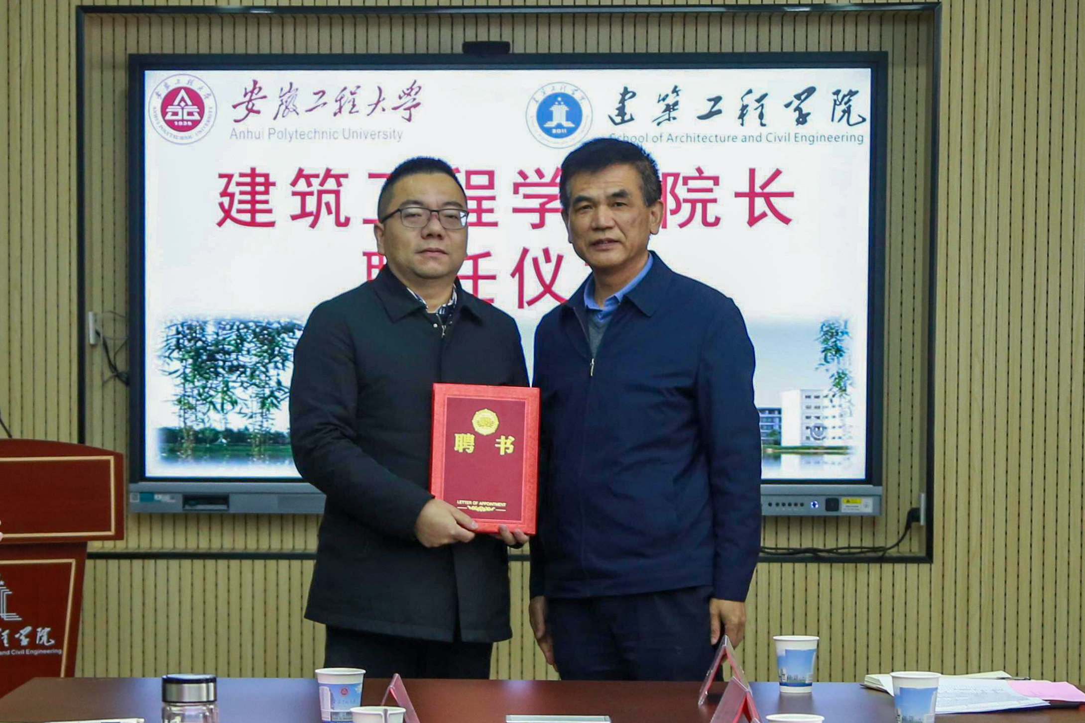 校党委常委、组织部部长王弘宣读干部任免文件,人事处处长冉昆玉介绍公开招聘有关情况和受聘院长曾磊的基本情况。卢平为新任院长曾磊颁发聘书。