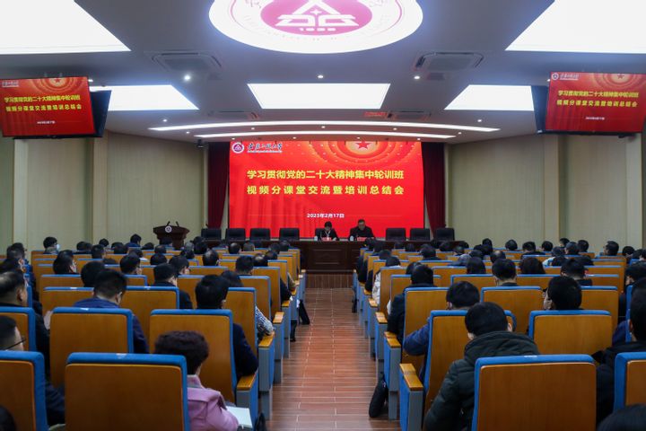 王弘首先对本次培训情况进行了总结。学校党委高度重视学校中层管理人员党的二十大精神专题培训,本次培训班由省委教育工委举办,培训时间自2023年2月13日至17日,历时5天,学校全体中层管理人员采取同步视频分课堂的方式,设立了2个视频分课堂,8个讨论组。为了做好本次培训工作,学校成立了由组织部、办公室、宣传部、研究生部、计算机与信息学院、现代技术中心等部门人员组成的专班,实施同步视频分课堂的组织管理协调等工作。王弘通报了培训期间的考勤情况,同时对为本次培训班提供支持的单位和工作人员表示感谢。