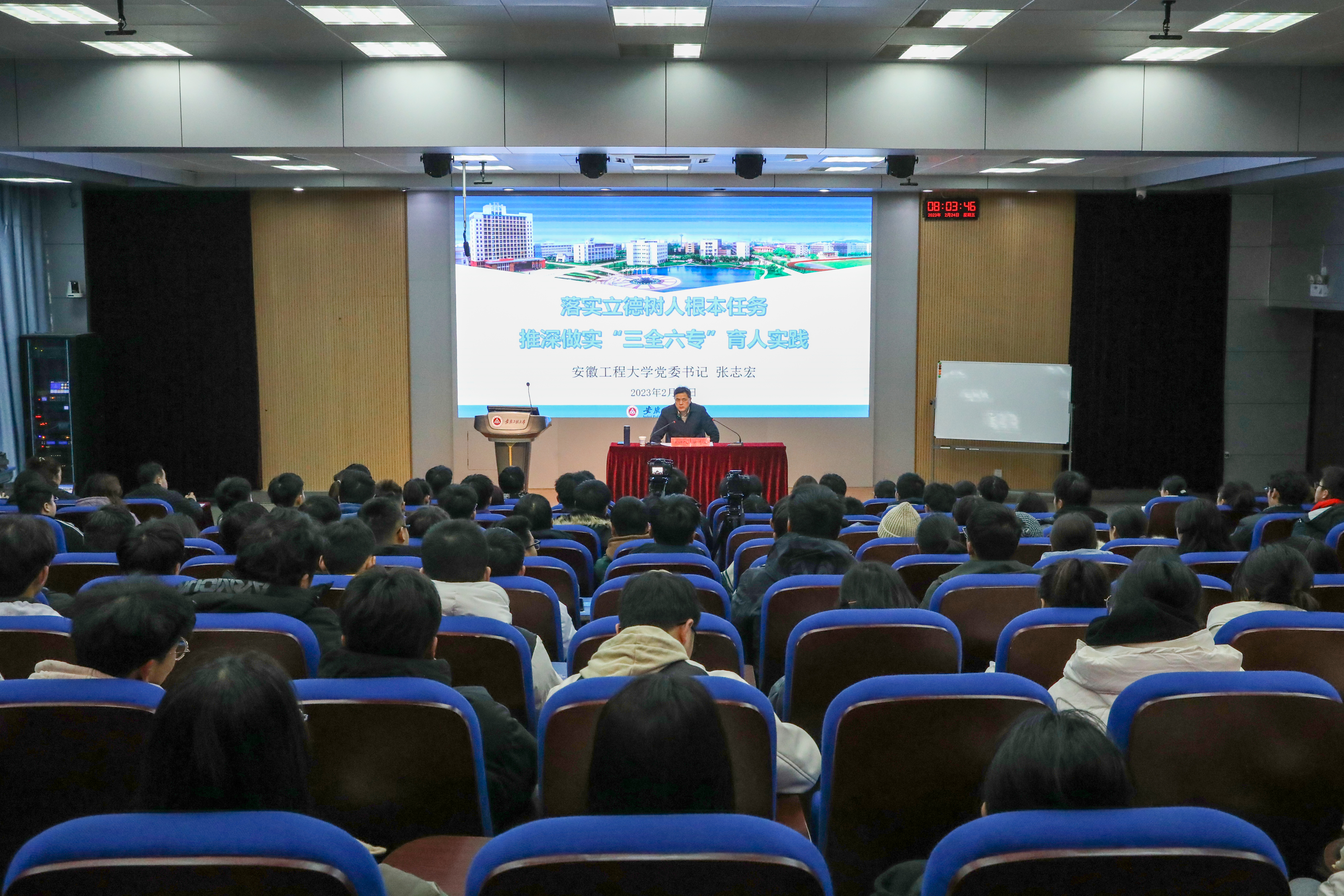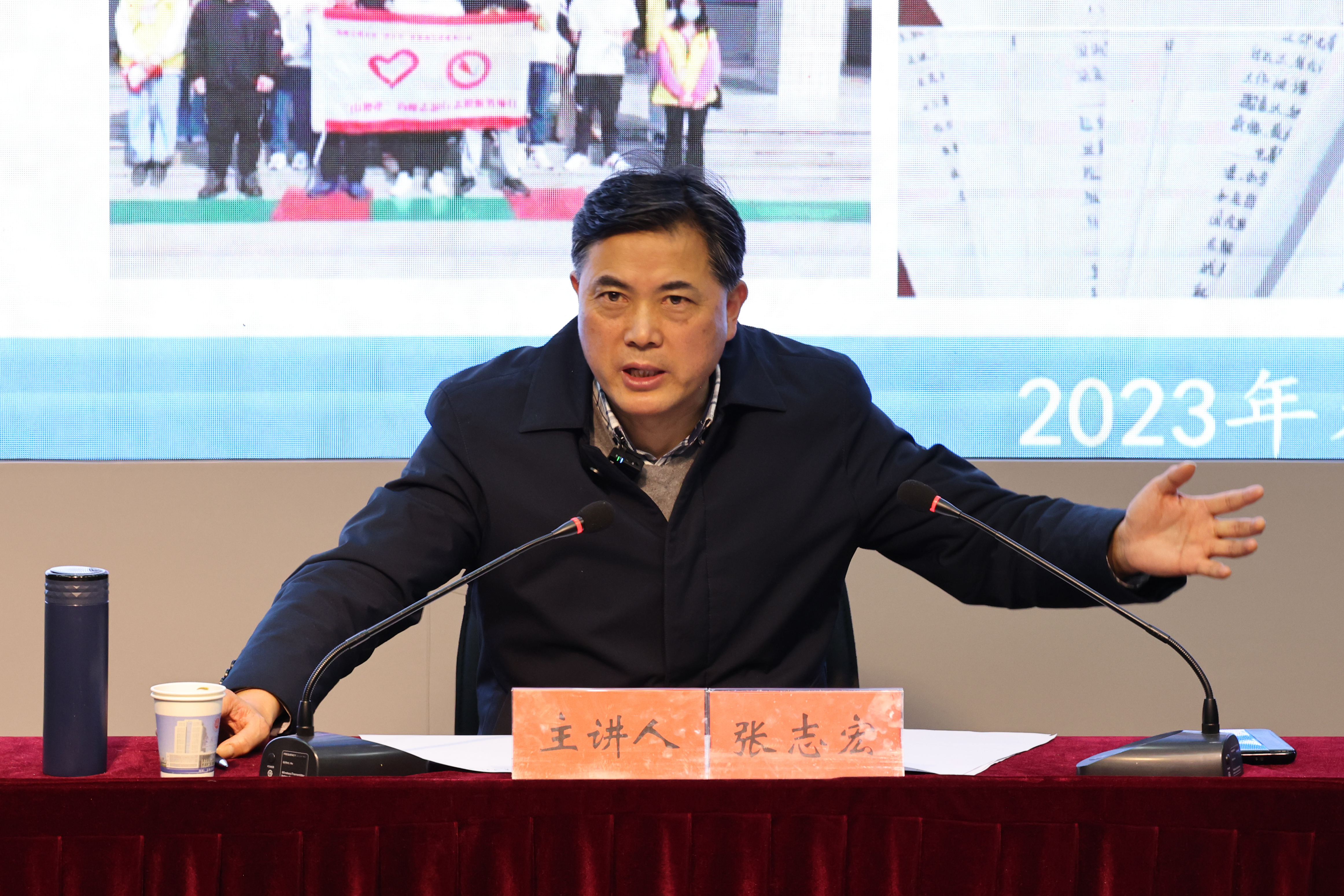张志宏强调,学校创新性地提出“三全六专”育人实践是培养社会主义事业建设者和接班人的需要、是落实立德树人根本任务的要求、是服务青年学生成长成才的需要。他从“为什么”“是什么”“怎么做”等方面介绍了学校全面推行抓价值引领让学生“正”起来、抓学风建设让学生“学”起来、抓习惯养成让学生“壮”起来、抓心理健康教育让学生“乐”起来、抓劳动教育让学生“勤”起来、抓和谐学生社区管理让学生“和”起来的成效做法。他指出,“三全六专”育人实践充分体现了学校以生为本的育人理念。他希望,青年大学生把人生奋斗当做一场马拉松,不断强健体魄、锤炼品德,实现“为祖国健康工作五十年”,跑好人生长跑。他强调,高校作为思想政治工作的前沿阵地,青年大学生作为“大众舆论场”的主力军,要树立正确的价值观,培养责任感,发扬斗争精神,遵守网络文明规范,用实际行动激扬网络正能量。