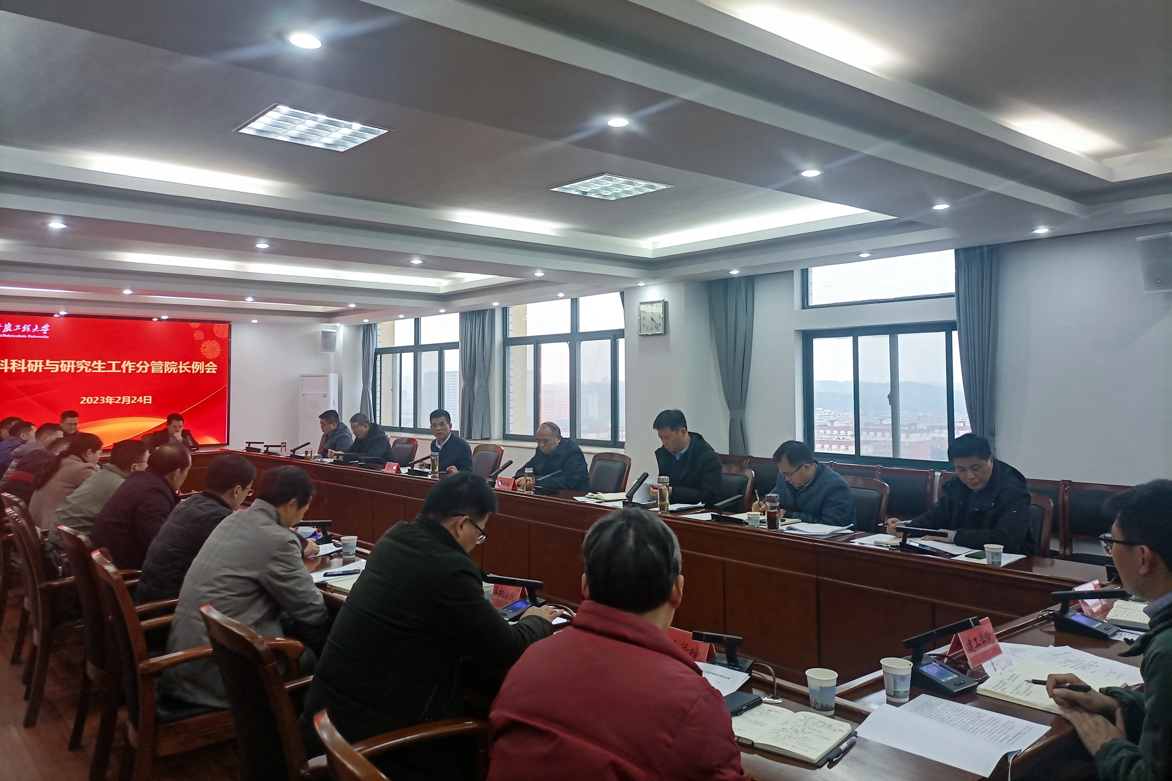 研究生部主任、科技处处长凤权汇报了我校2023年研究生招生考试初试成绩基本情况及近期招生工作进展,并对省高峰(培育)学科建设、国家基金申报、成果奖申报等工作进行了布置,提出了具体要求。