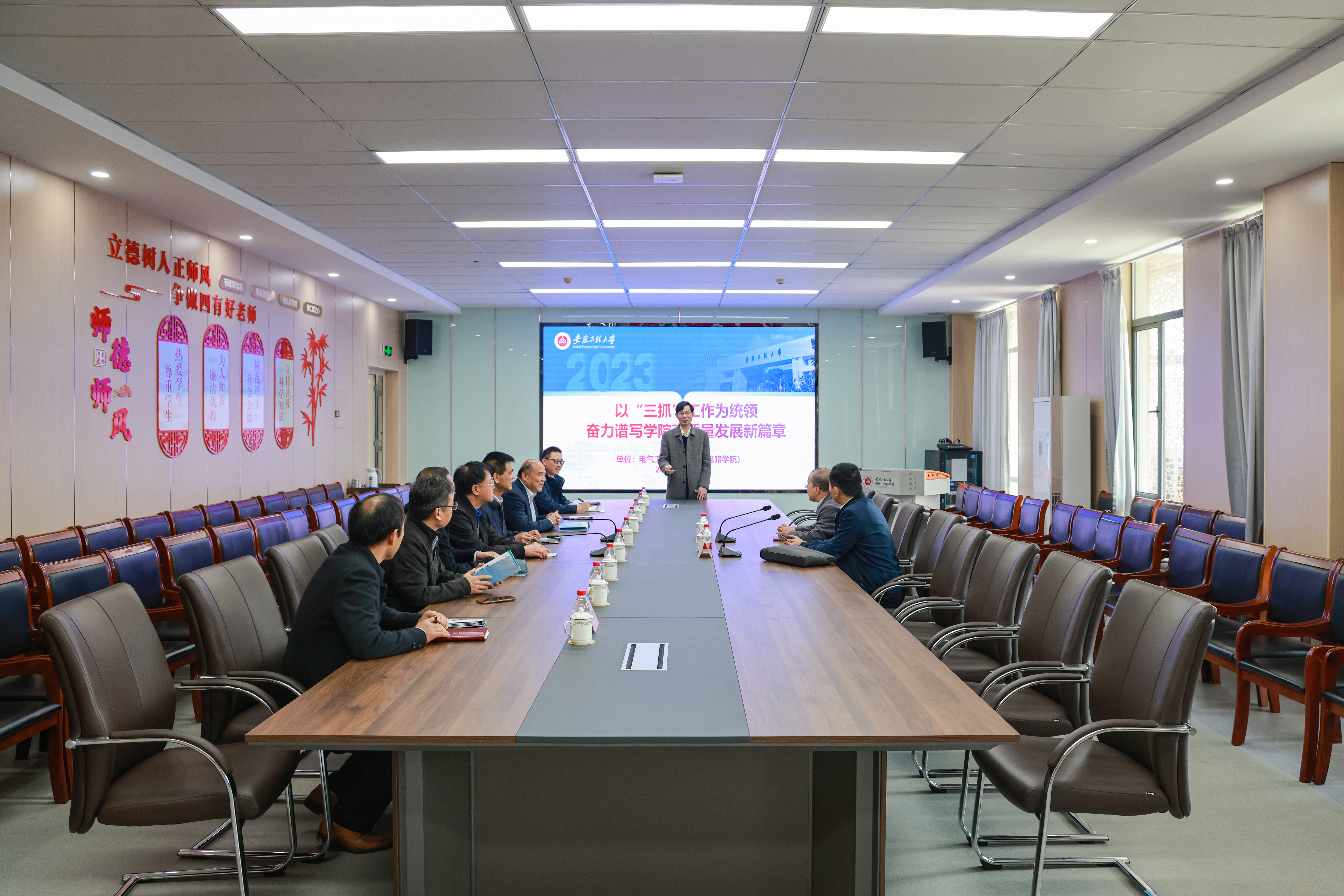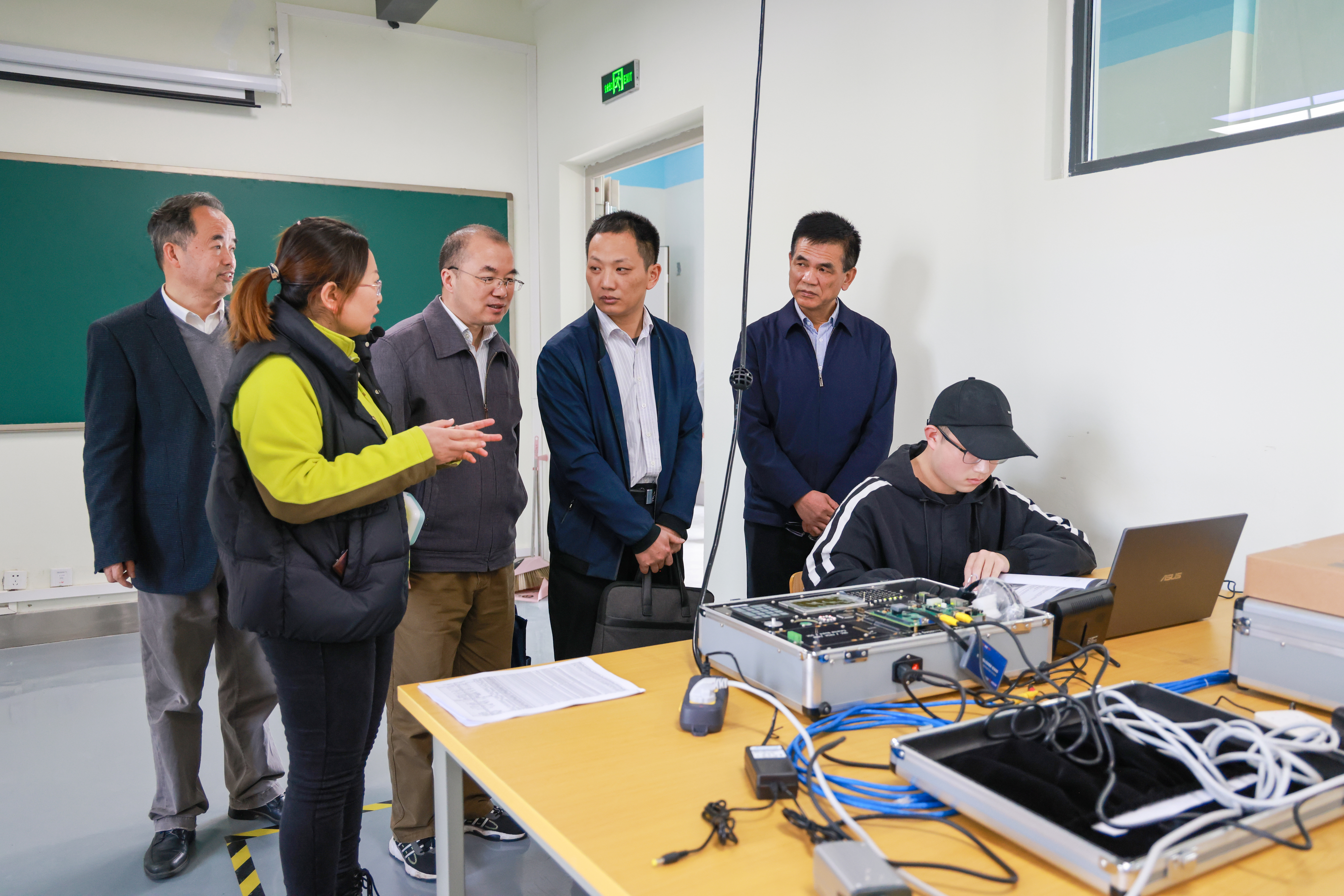 综合考核组现场查阅了学校2022年度党建、发展档案资料,实地走访了教务处(招生办公室、教师能力发展中心)、电气工程学院、纺织服装学院、机械工程学院实习实训中心,深入考察了解学校党建与发展工作开展情况。