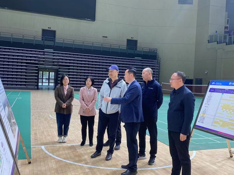 国家体育总局领导一行实地查看了瓜沥文体中心卡巴迪项目比赛场地,详细听取场馆改造提升、场馆运行团队组建、场馆运行设计基本情况介绍,了解卡巴迪运动员、技术官员等客户群的运行流线以及赛事功能用房分布情况。