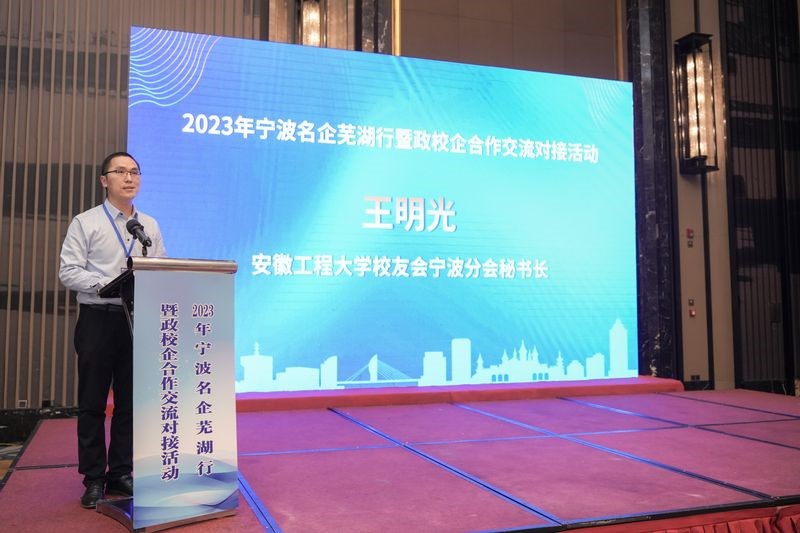 校友会宁波分会秘书长王明光校友发言表示,宁波分会始终肩负“通江达海,互联共赢”的使命,致力于把宁波的优势资源带到芜湖带回母校,实现政校企共同发展。
