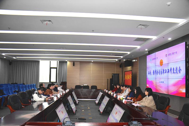 交流中胡雯对安徽工程大学领导和工会的热情周到安排表示感谢,并就创新工会党建工作平台、二级职工之家和女职工阳光家园建设,教职工协会建设与管理、女职工活动开展和教职工普惠工作的落实等工作进行了深入交流与探讨。她表示通过交流座谈,不仅交流了两校工会、教代会和女职工工作高质量发展的工作经验,更开拓了工作思路。