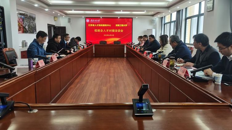 本网讯 4月3日,学校与江苏省人才流动服务中心、相关企业在A座1215会议室举行校政企人才对接洽谈会。江苏省人才流动服务中心主任李晓军一行9人,学校党委常委、副校长郑健,学生处、科技处等相关职能部门负责人参加洽谈会。