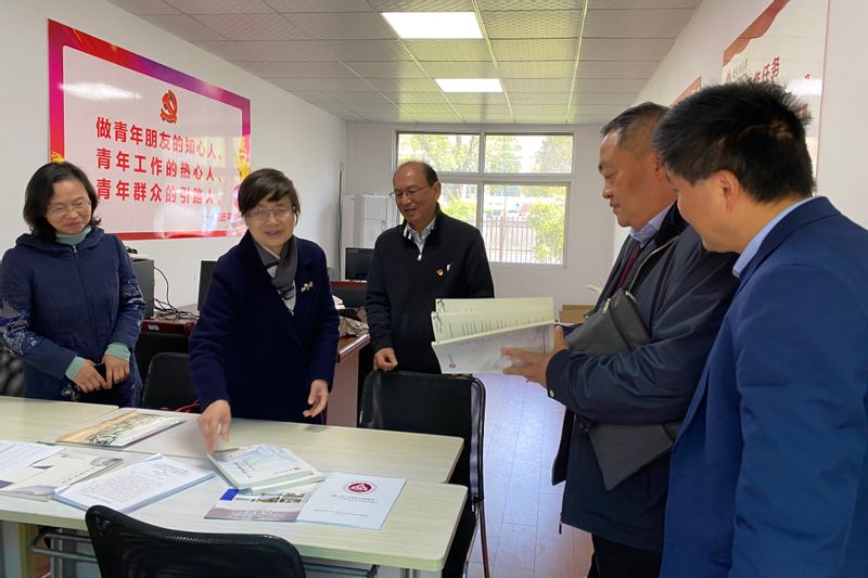 会后,苏国红查阅了校关工委的工作材料并予以指导。